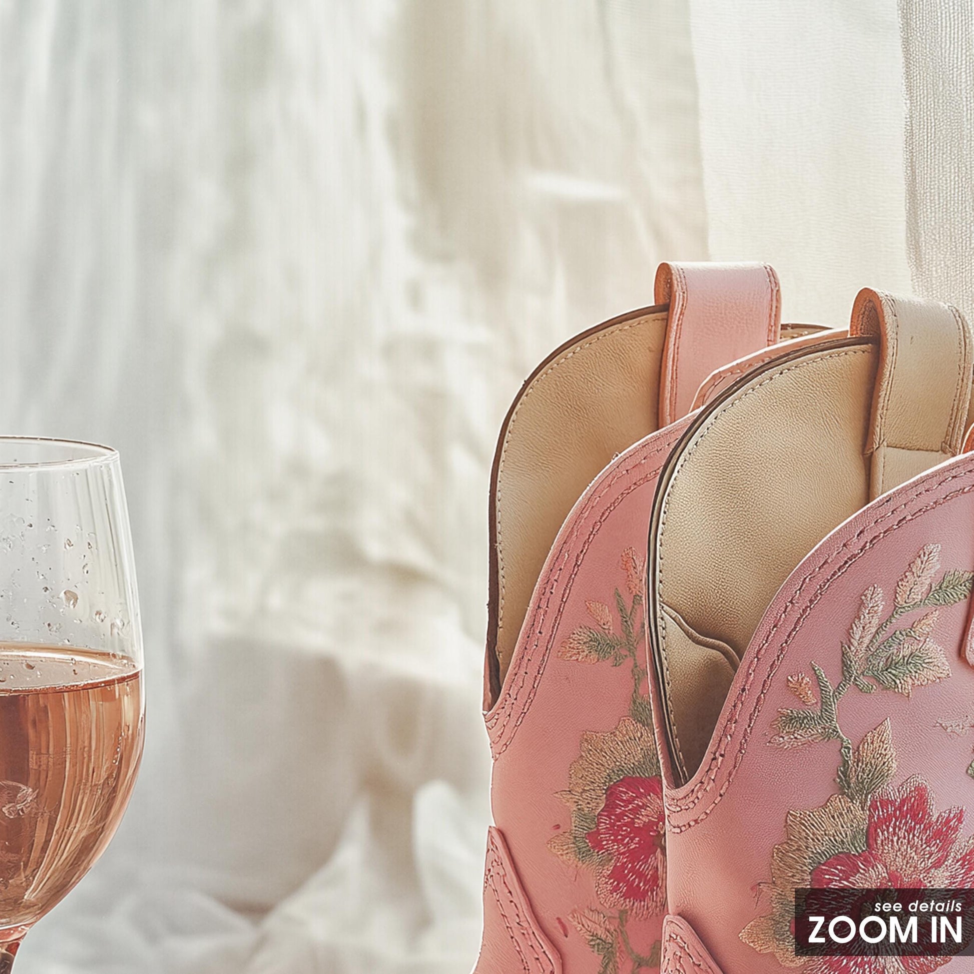 Floral Pink Cowgirl Boots with Rosé – Feminine Western Still Life
