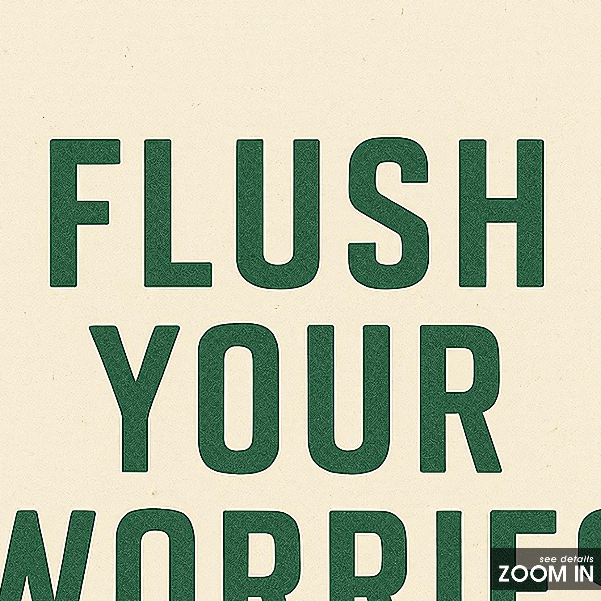 Flush Your Worries Away Poster – Funny Bathroom Wall Art in Minimal Green