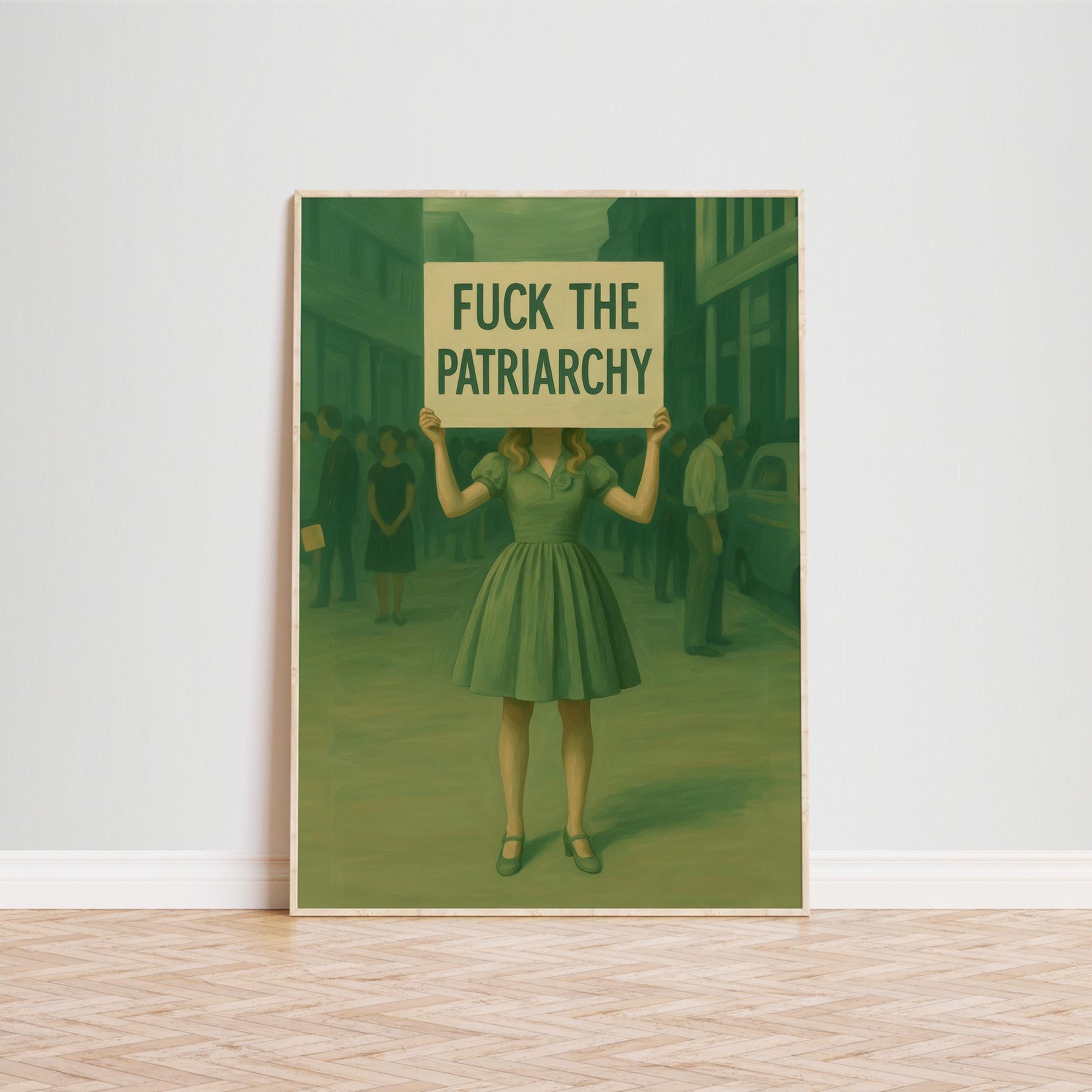 Fuck the Patriarchy Poster – Feminist Protest Wall Art in Retro Green Style