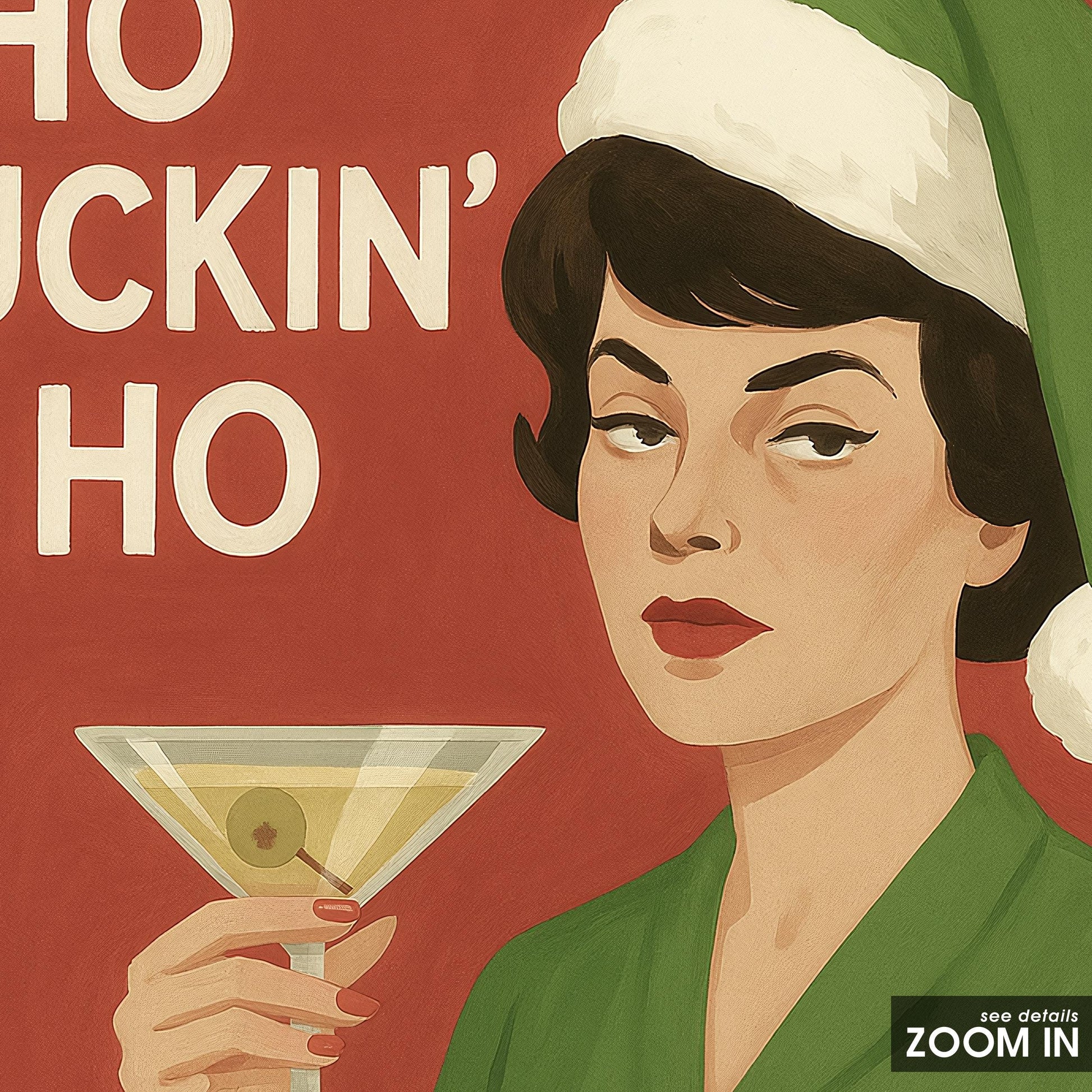 Funny Christmas Poster – Retro Holiday Print With Sarcastic Martini Woman Art
