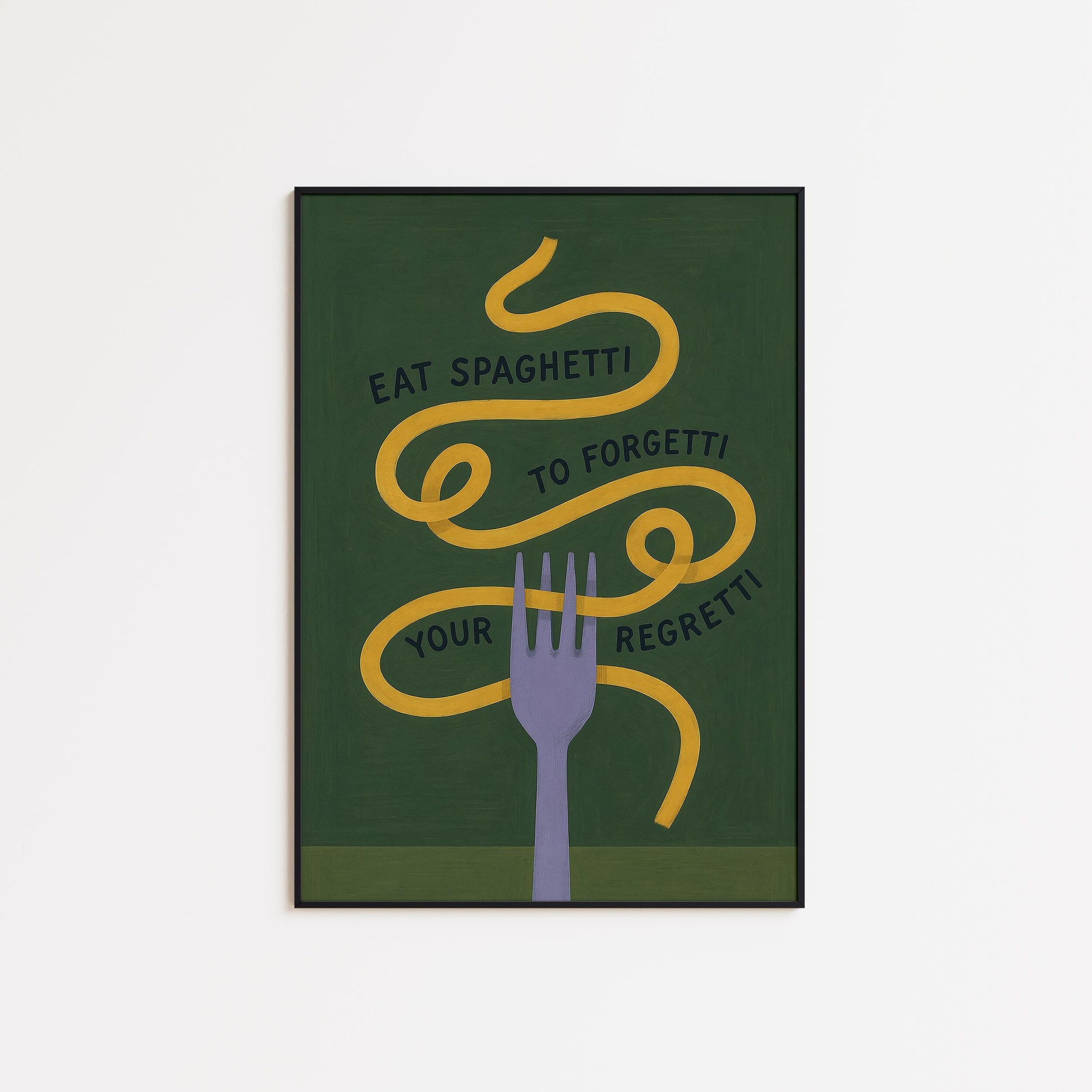 Funny Kitchen Wall Art – Playful Spaghetti Art Print | Pasta Lover Gift