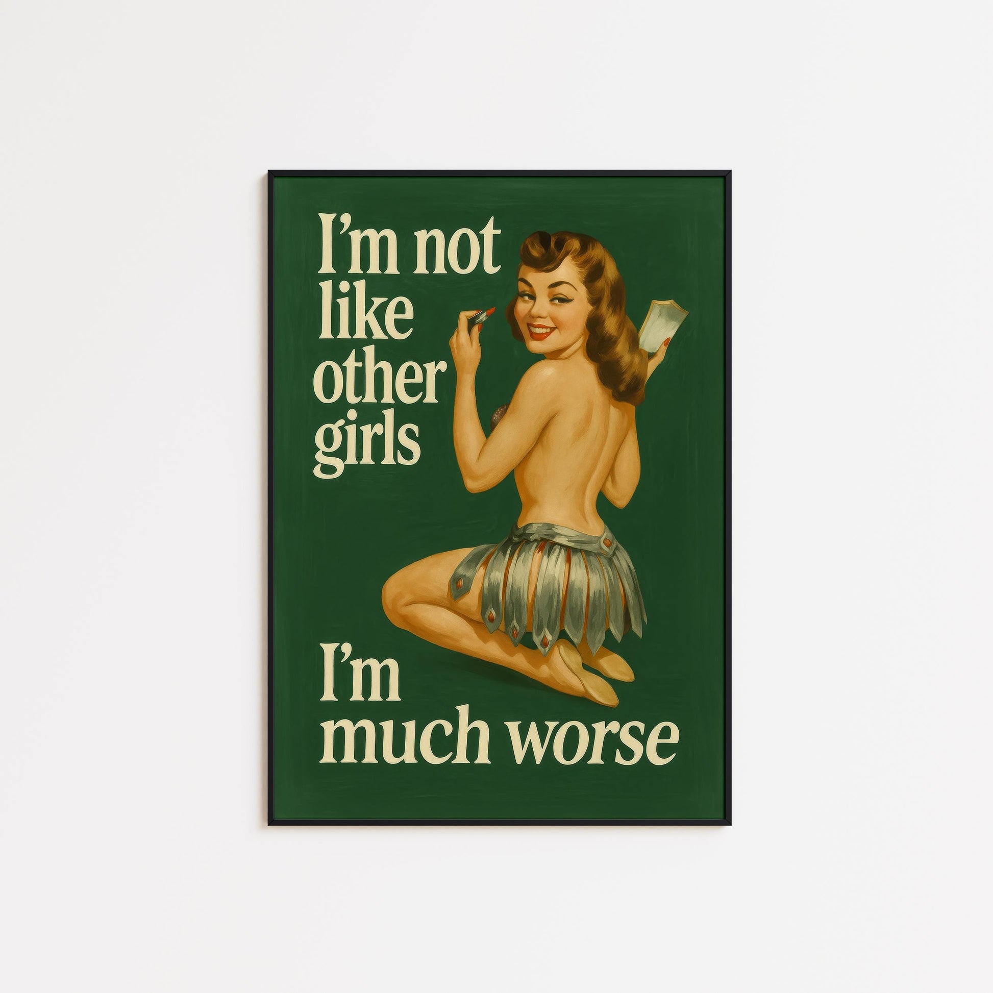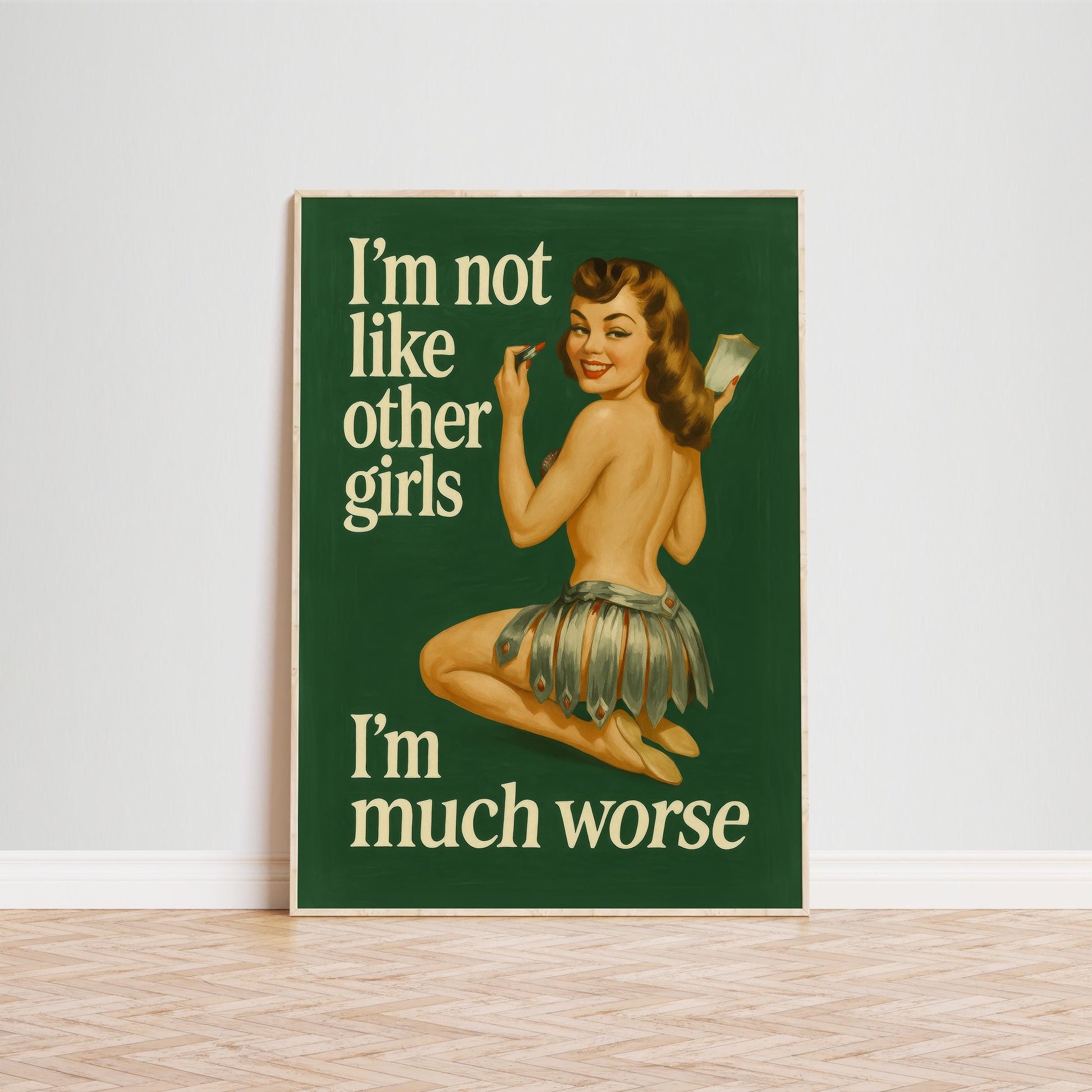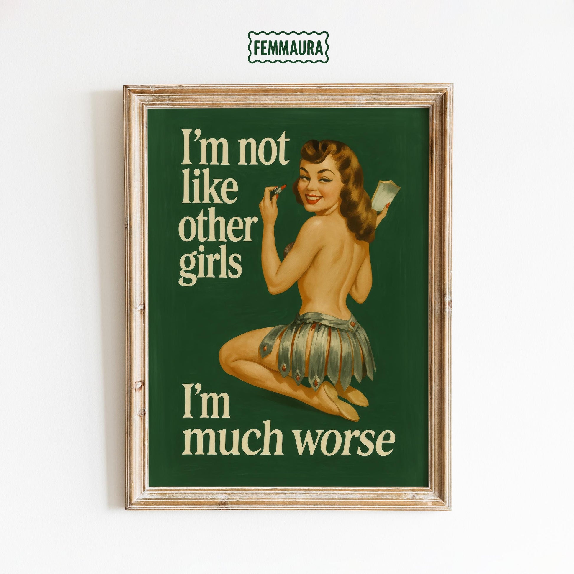 Funny Pin-Up Poster – Retro Wall Art With Bold Feminist Quote Print, Green Background Decor
