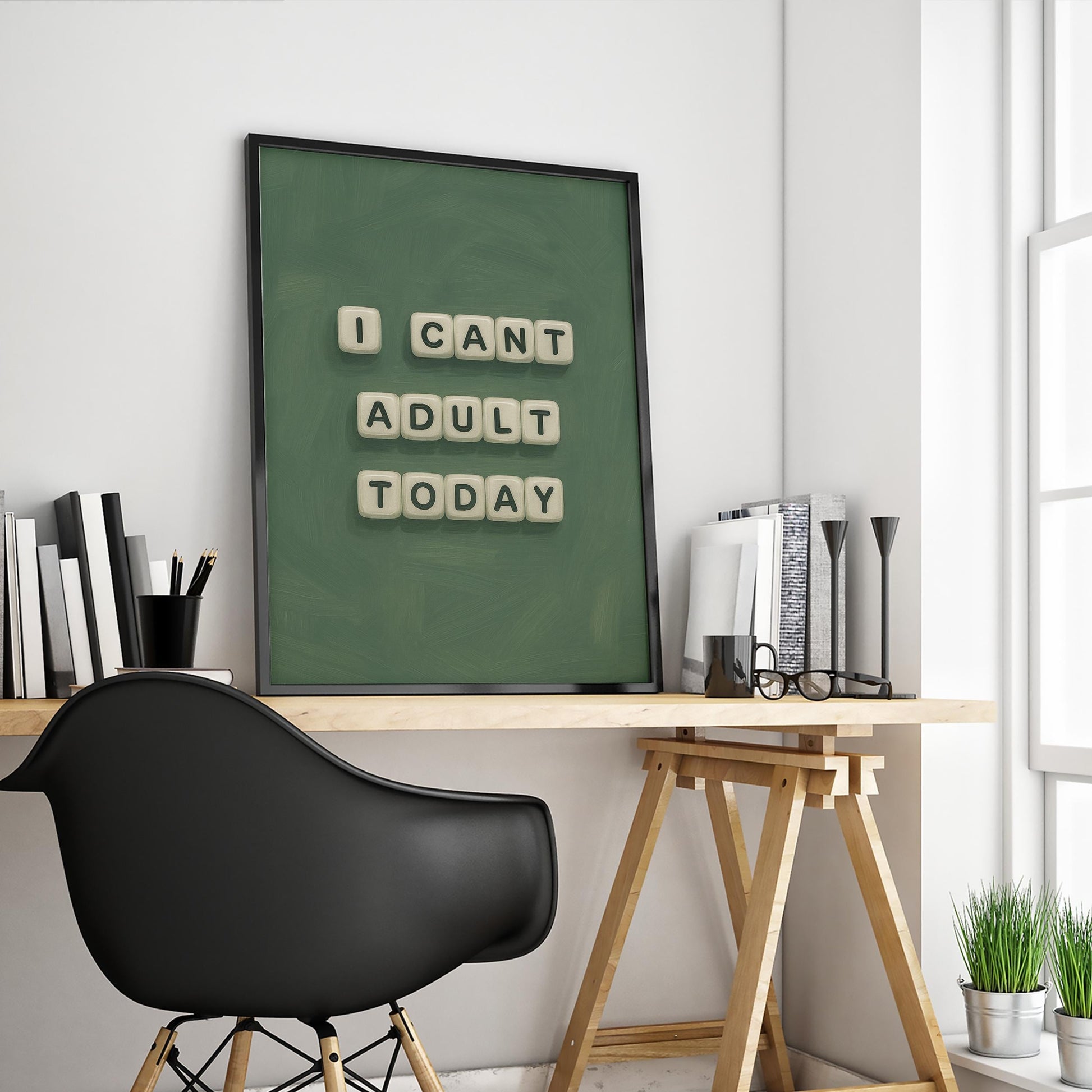 Funny Quote Poster | Bold Green Typography Art – Adulting Quote Print for Home