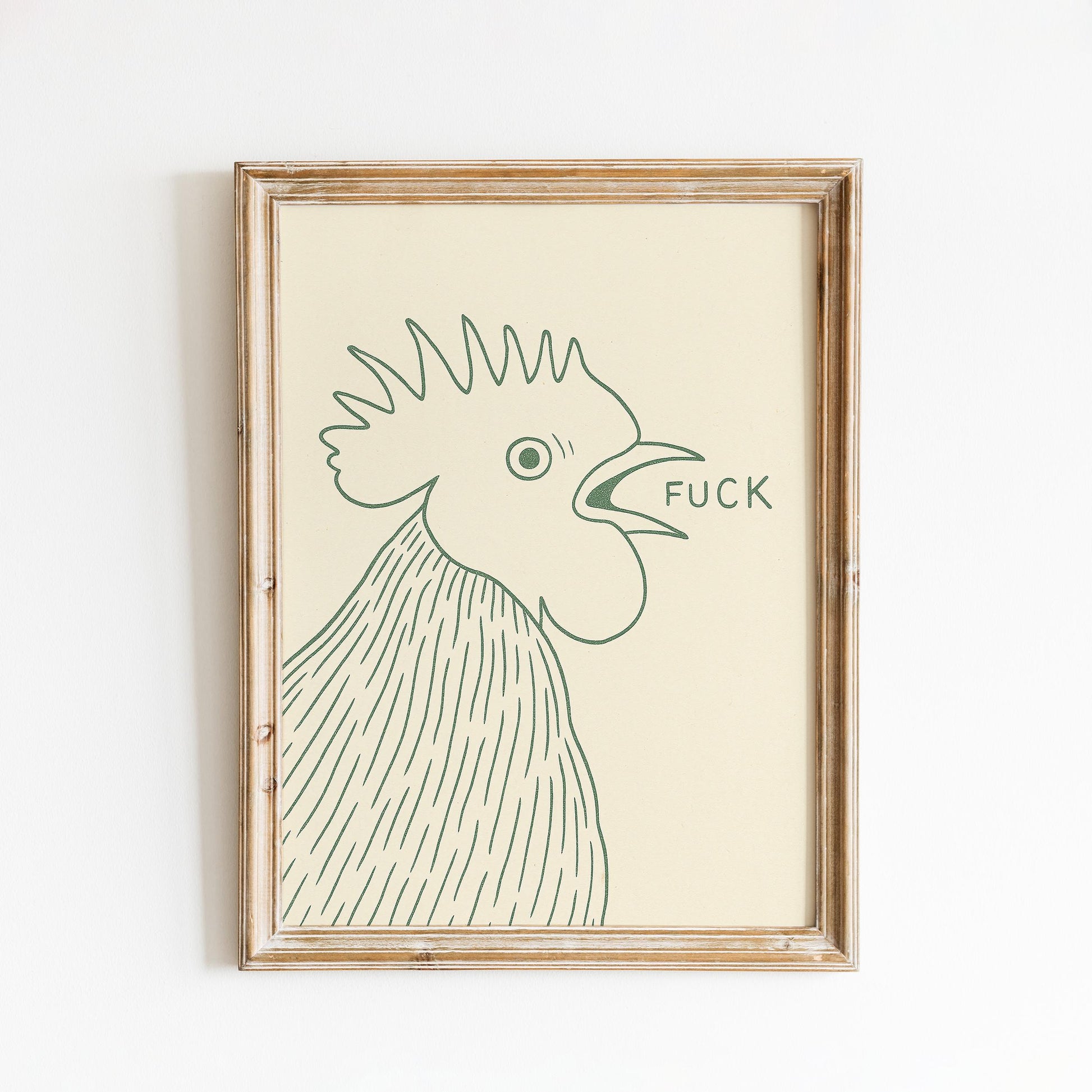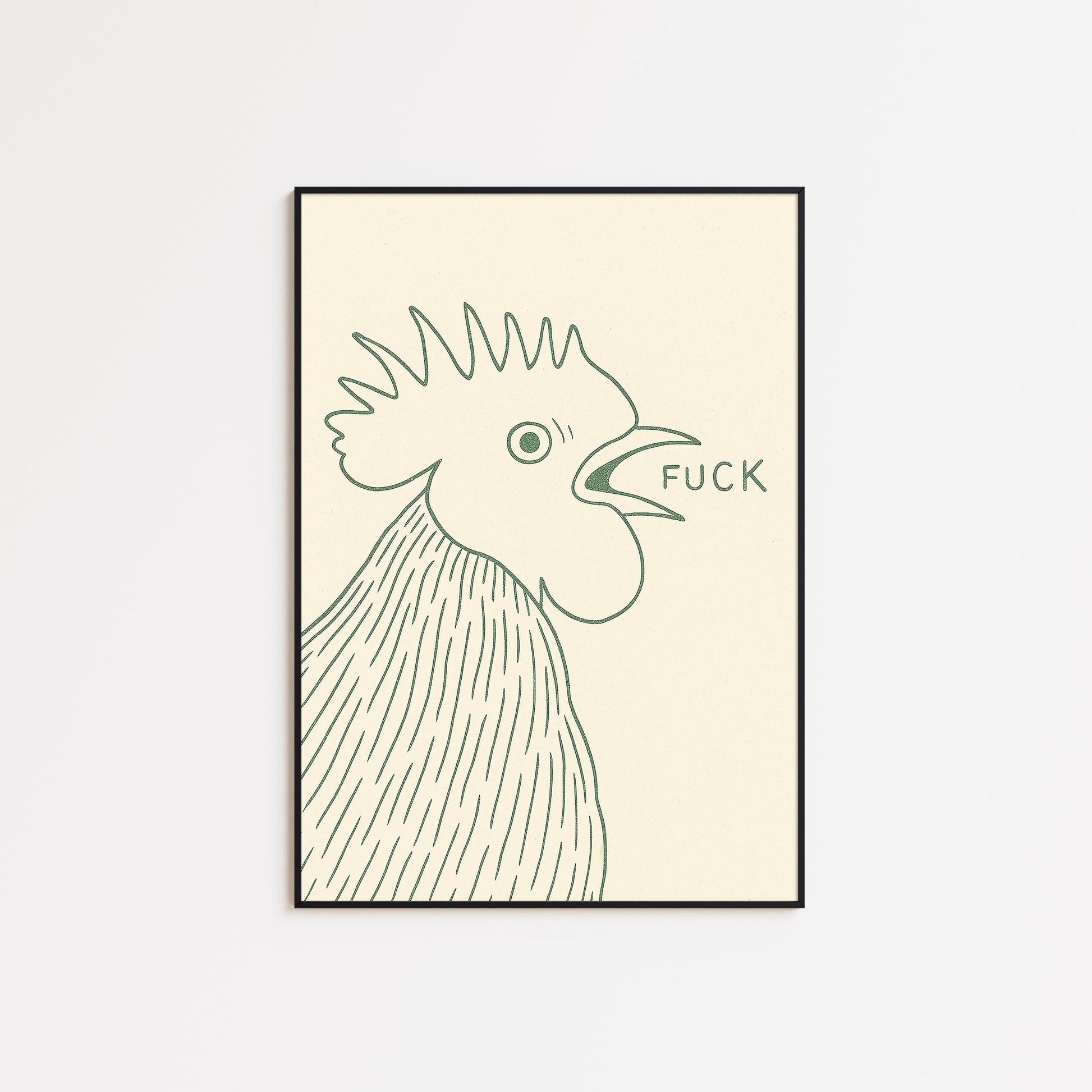 Funny Rooster Poster – Minimal Kitchen Wall Art, Bold Farm Animal Print