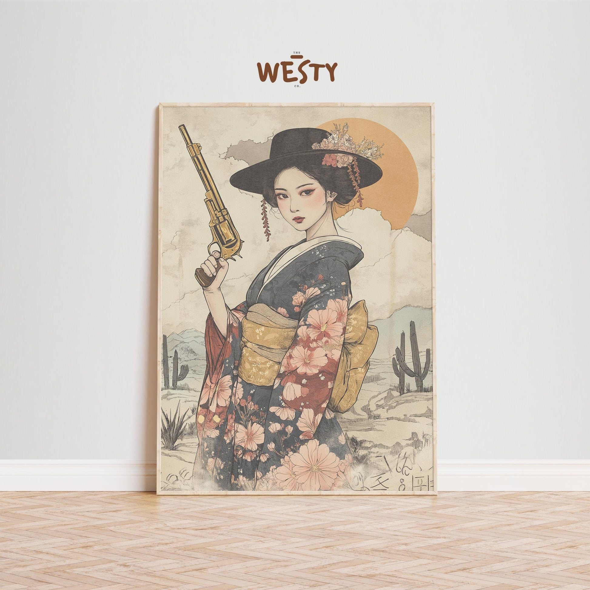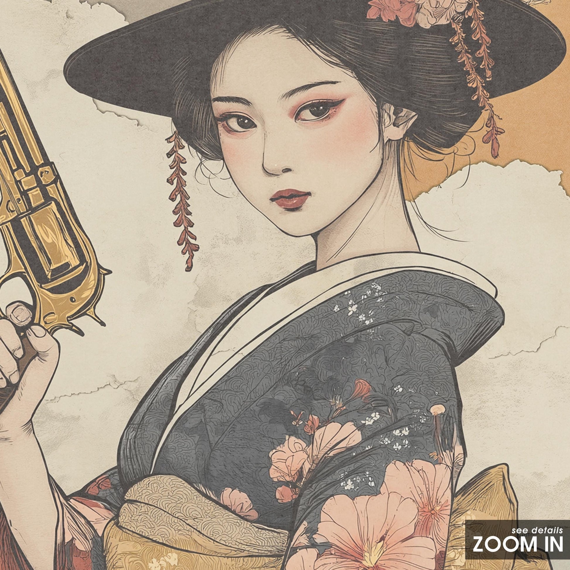 Geisha Gunslinger Poster – East West Floral Warrior Art Print