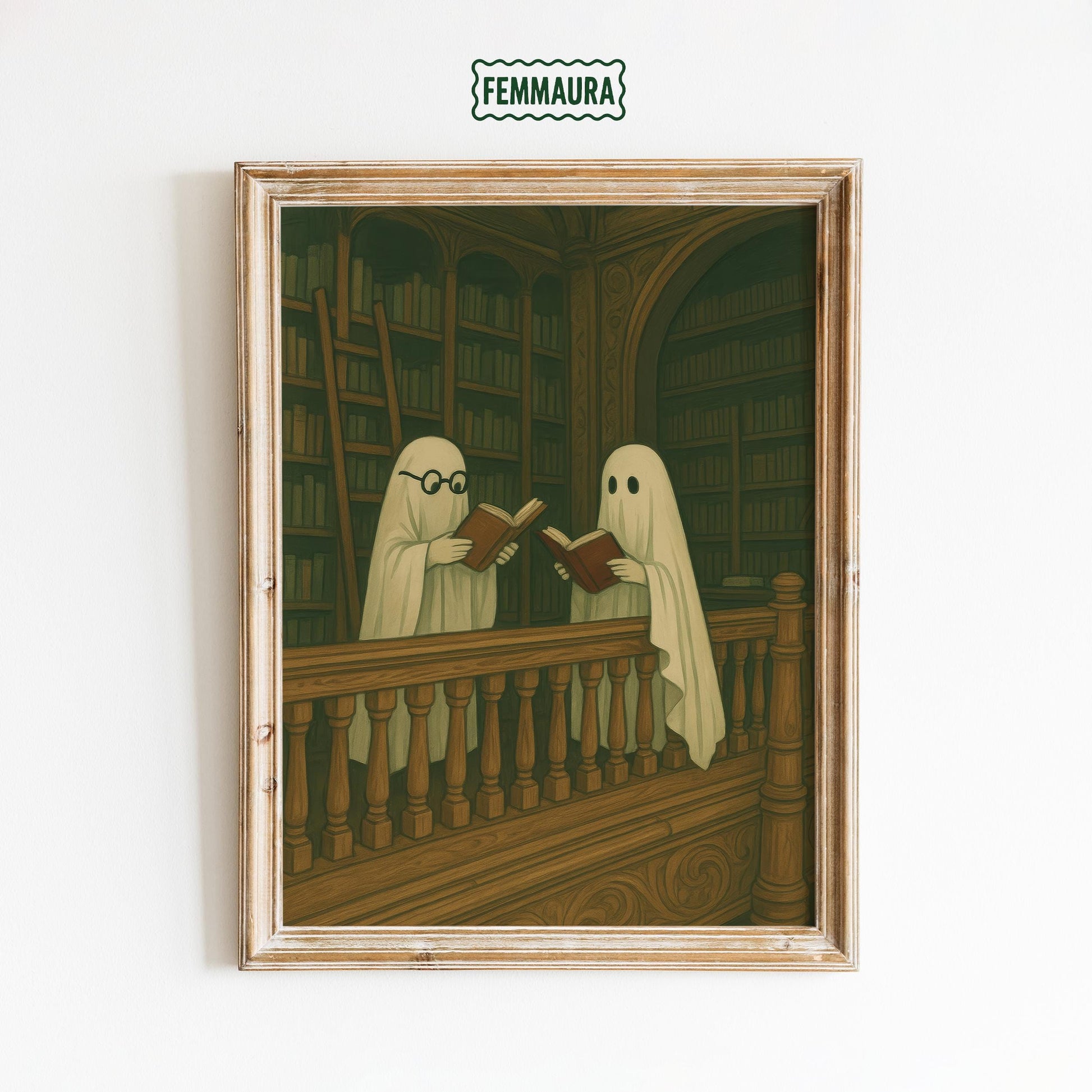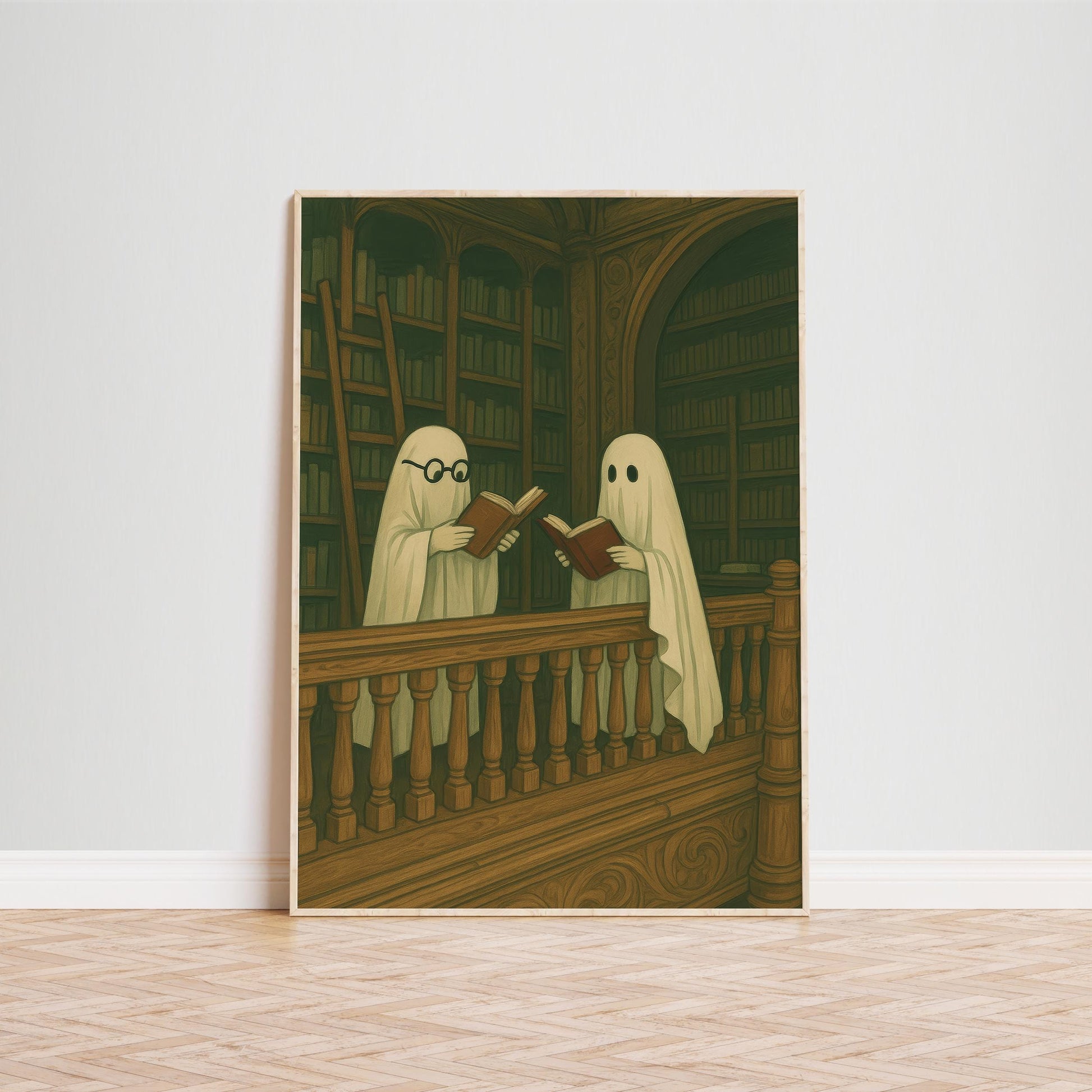 Ghost Library Poster – Dark Academia Art | Spooky Wall Print With Moody Gothic Tones