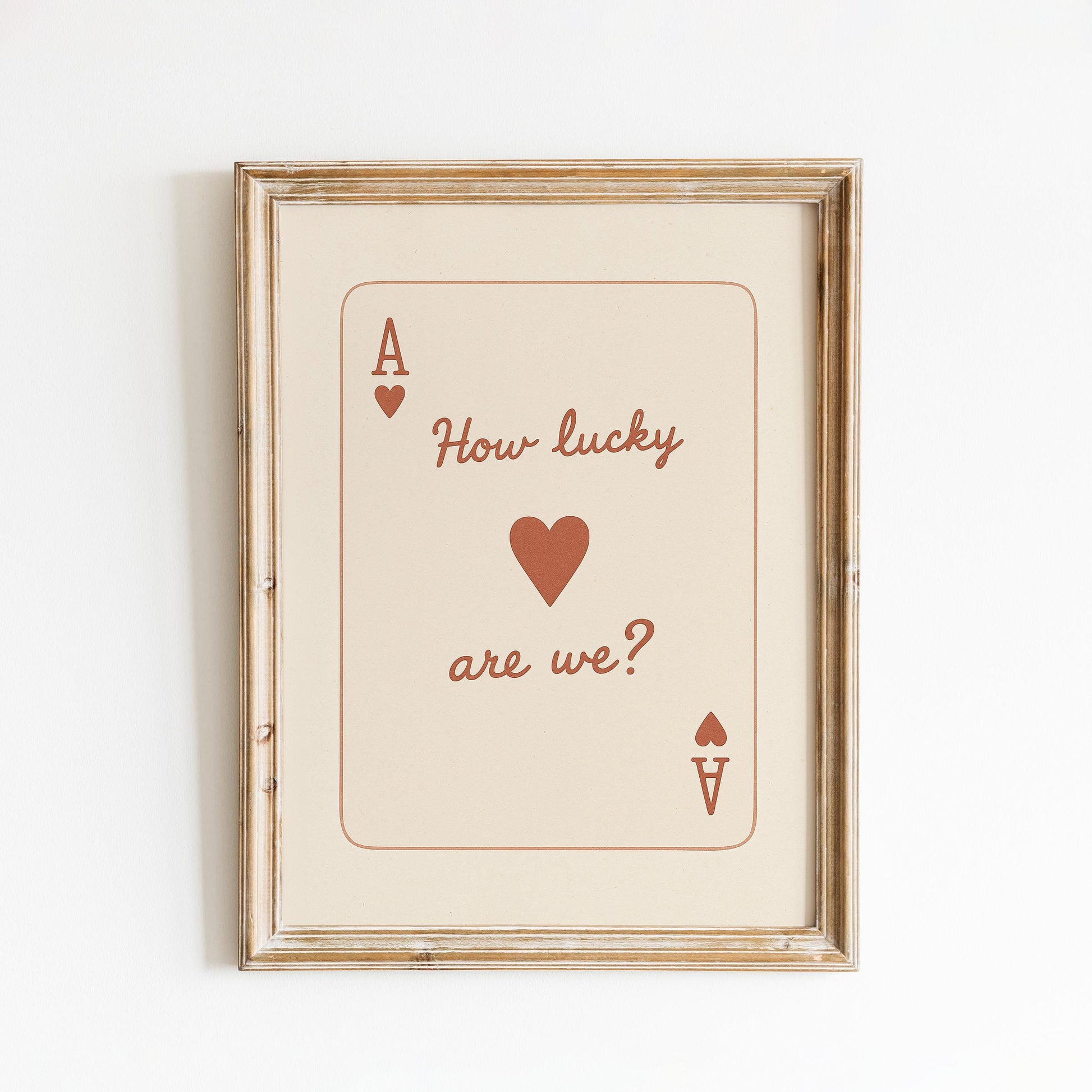 How Lucky Are We Poster – Vintage Brown Playing Card Wall Art for Couples
