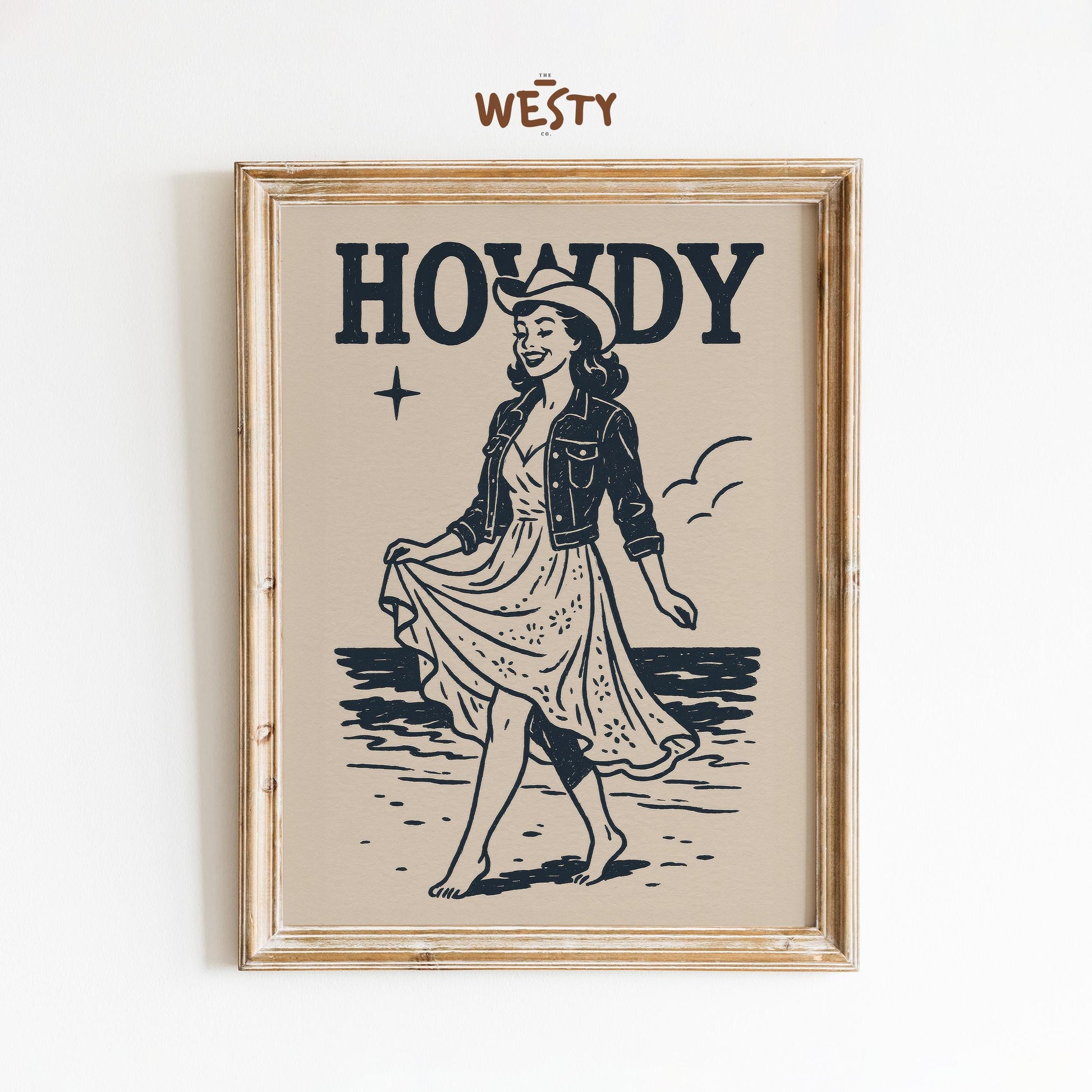 Beach Cowgirl Poster – Retro Western Wall Art With Soft Summer Vibes