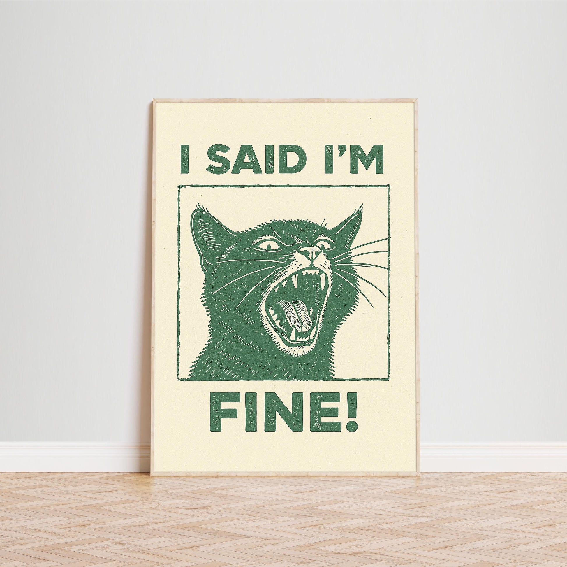 I Said I’m Fine Poster – Angry Cat Wall Art, Funny Vintage Animal Print for Home