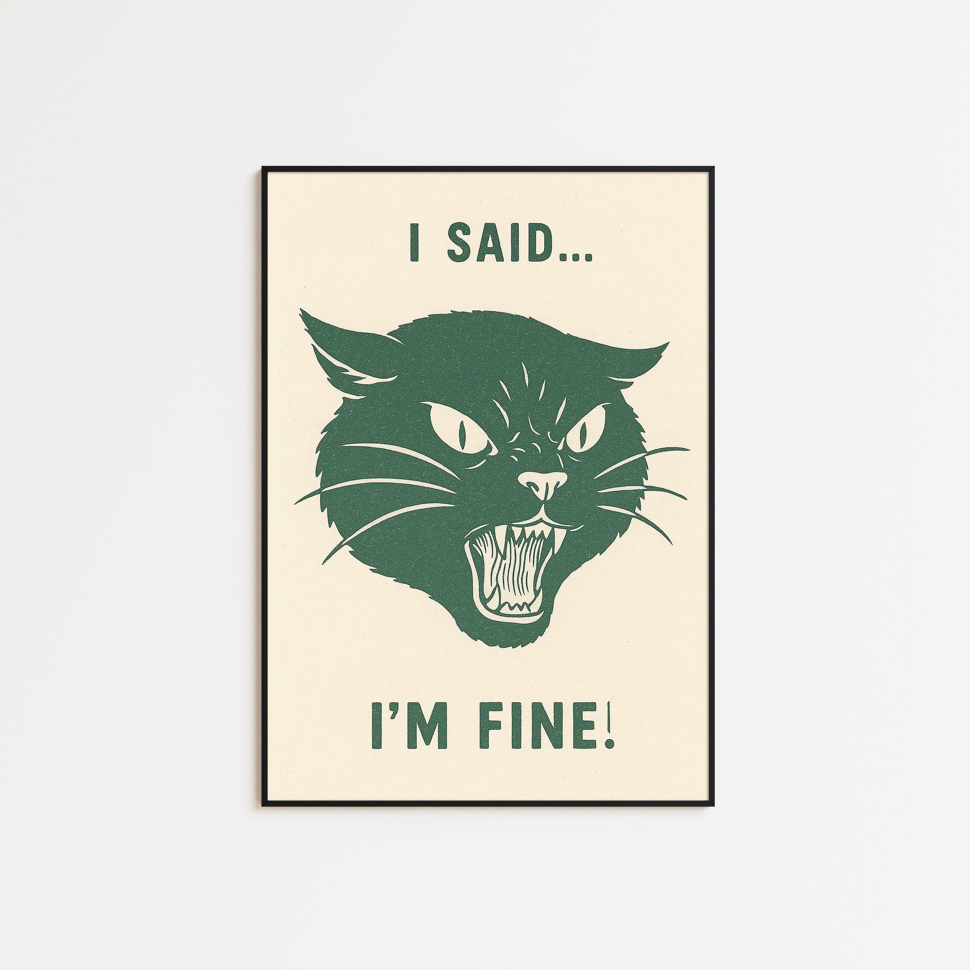 I Said I’m Fine Poster – Funny Angry Cat Wall Art, Retro Minimal Animal Print