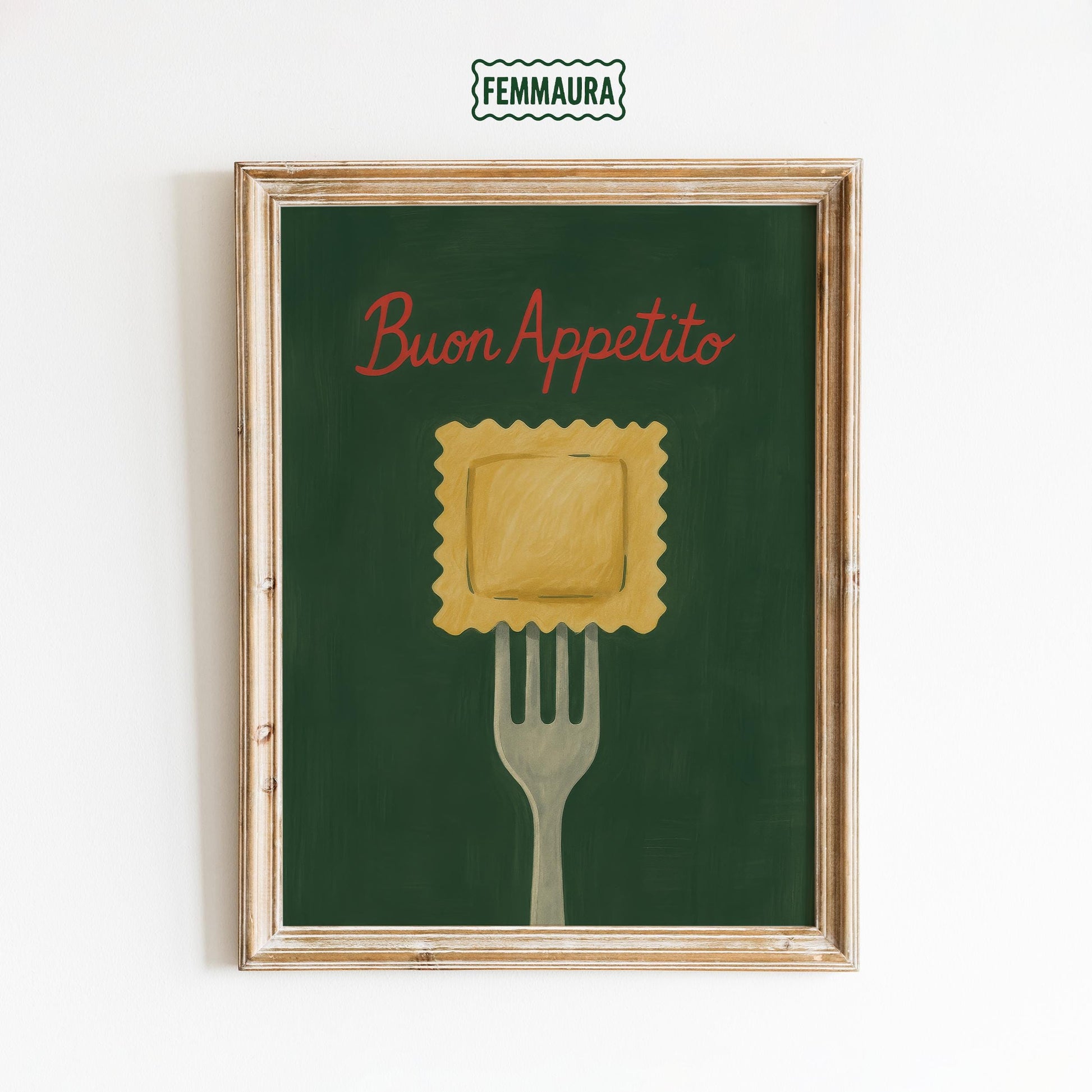 Italian Kitchen Wall Art – Buon Appetito Poster | Pasta Wall Print & Dining Room Decor