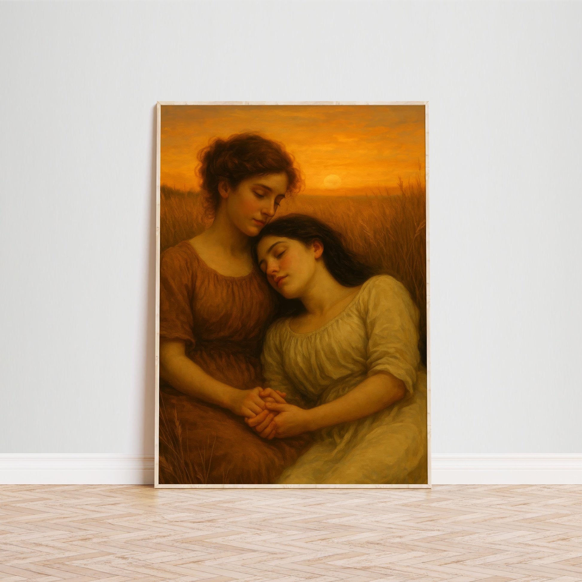 Lesbian Fine Art Poster – Romantic Wall Art With Golden Hour Wheat Field
