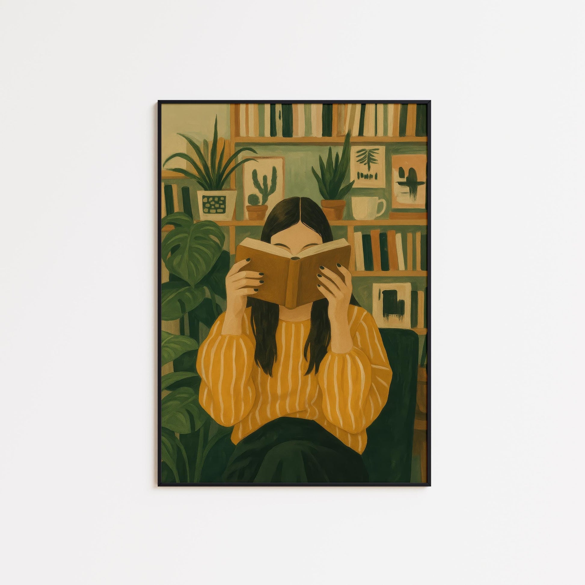 Library Wall Art – Cozy Reading Corner Poster With Book Lover Decor & Plant-Filled Room