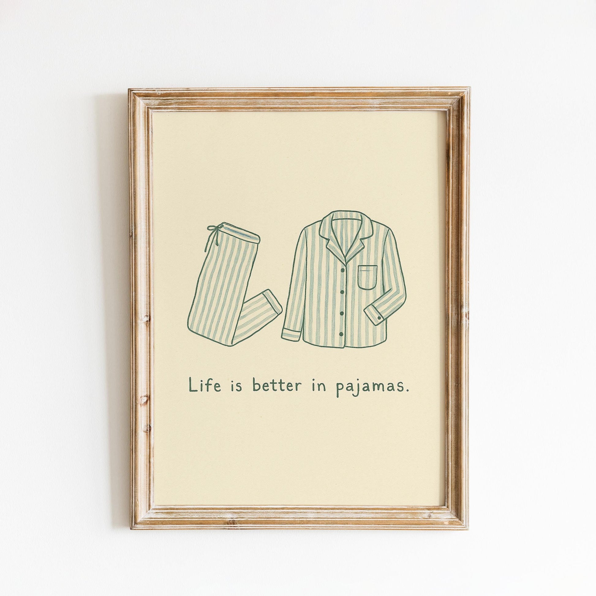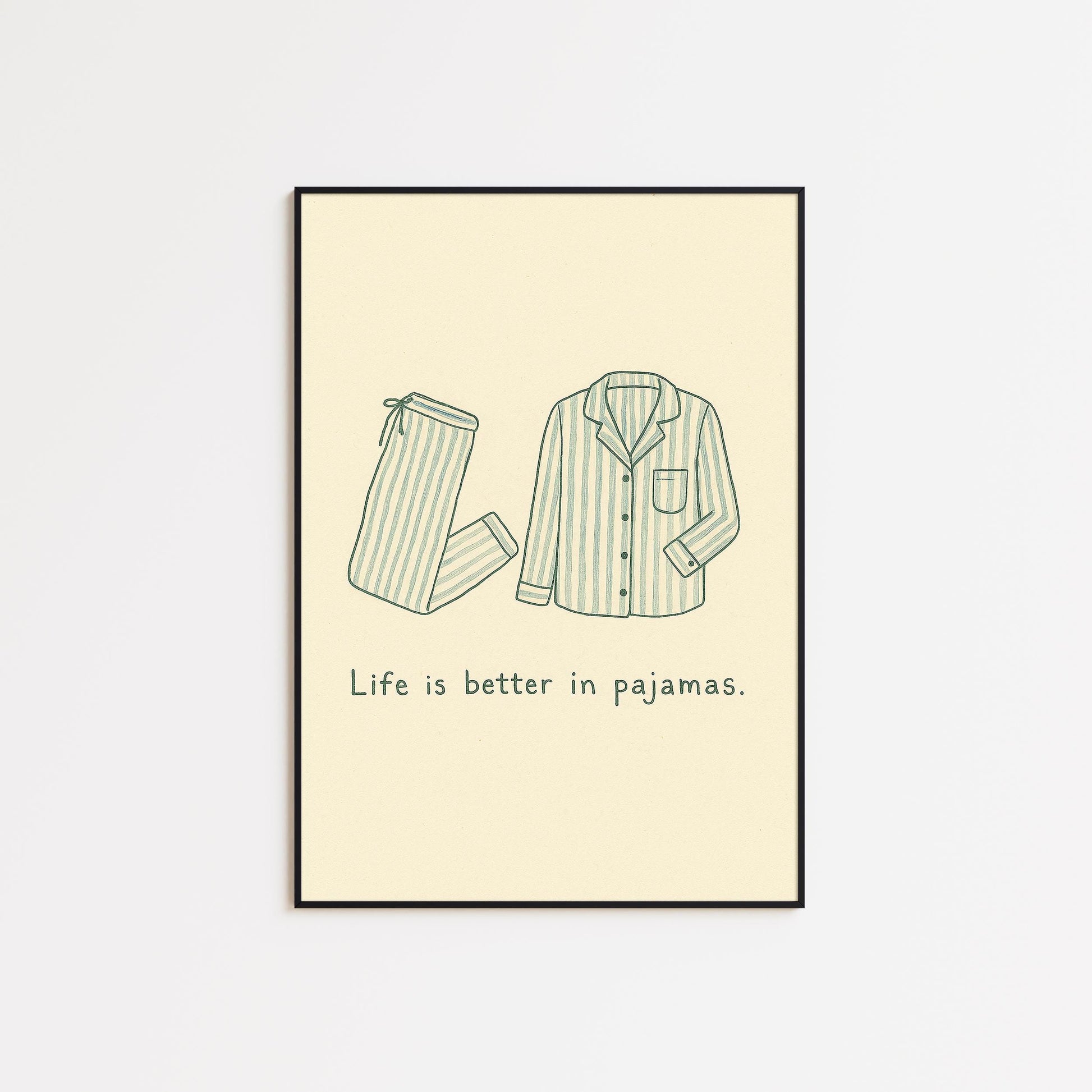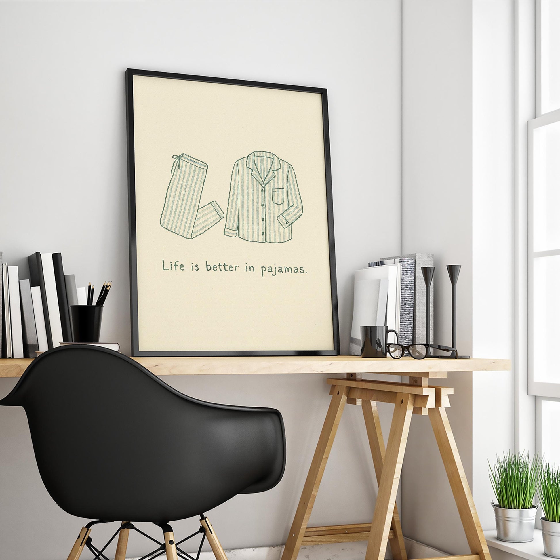 Life Is Better in Pajamas Poster – Cozy Minimal Bedroom Wall Art