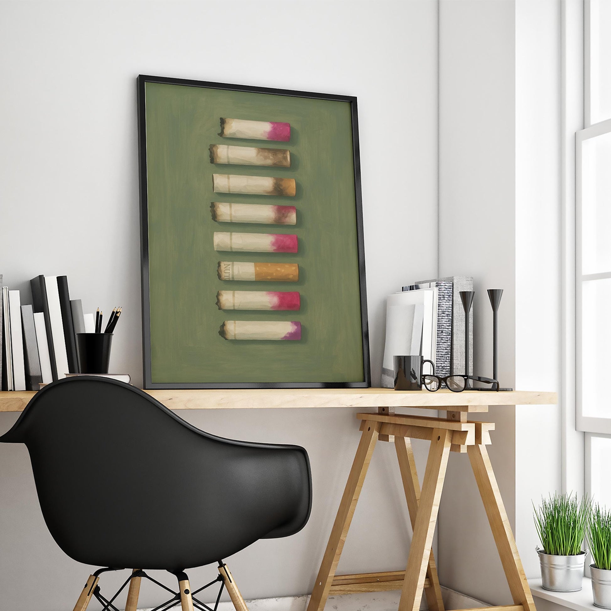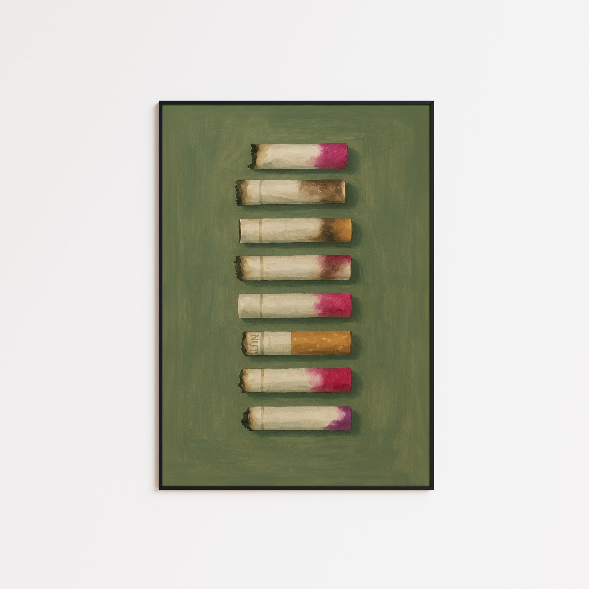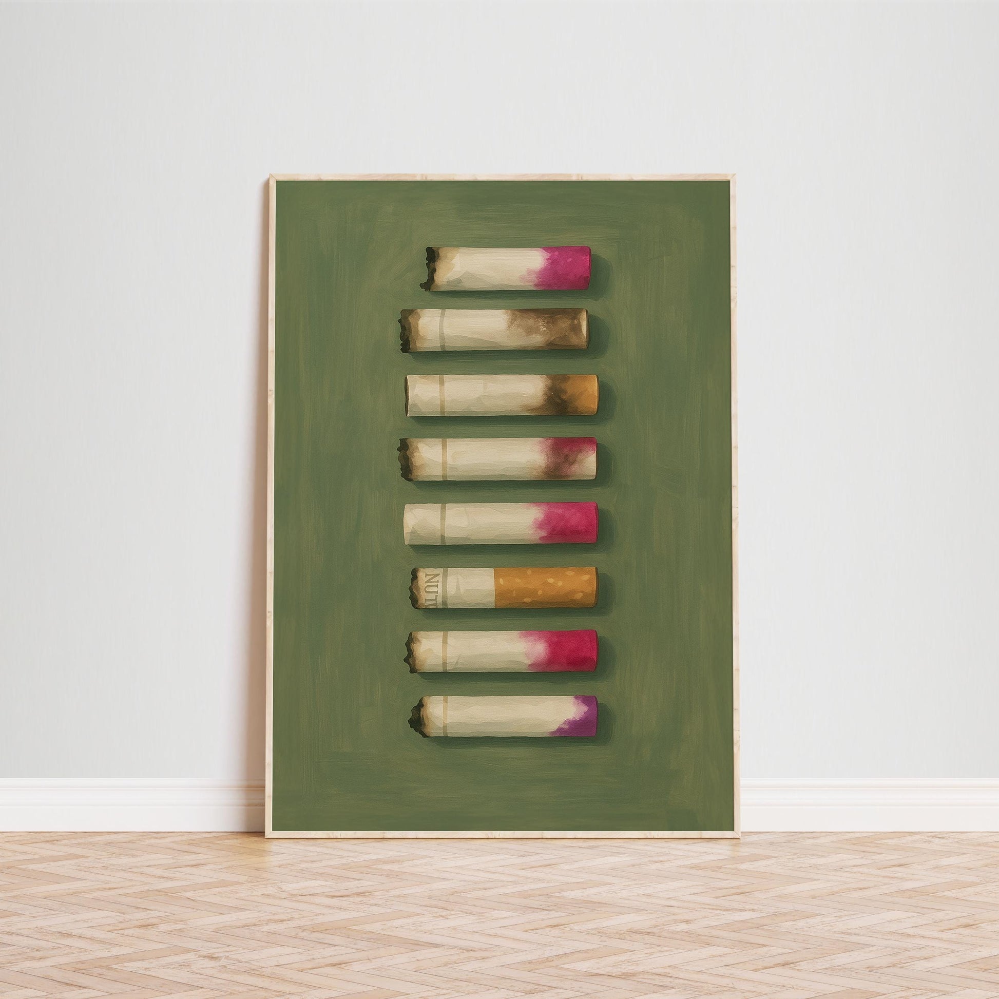 Lipstick Cigarette Butts Poster – Gritty Feminine Wall Art in Moody Green