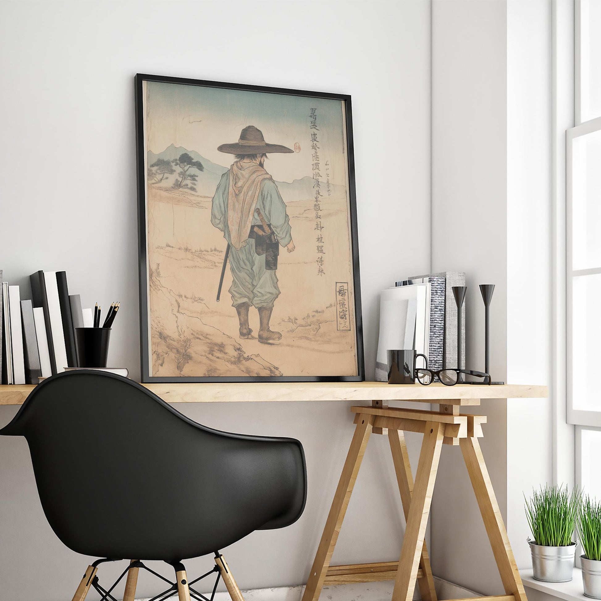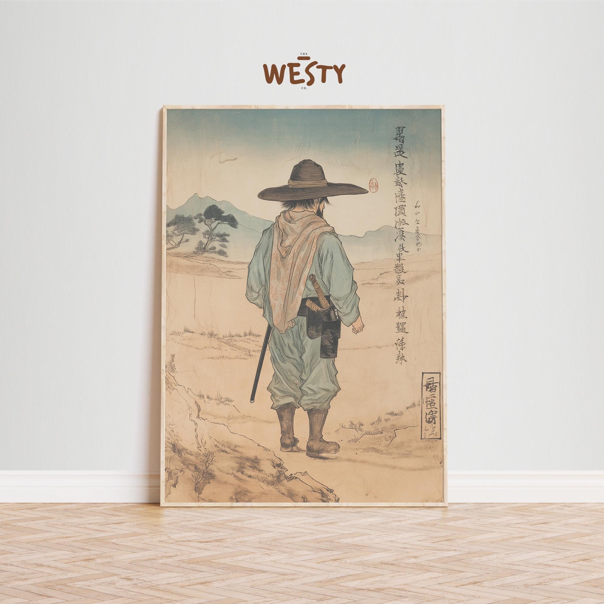 Lone Ronin Cowboy Poster – Japanese Western Minimalist Wall Art