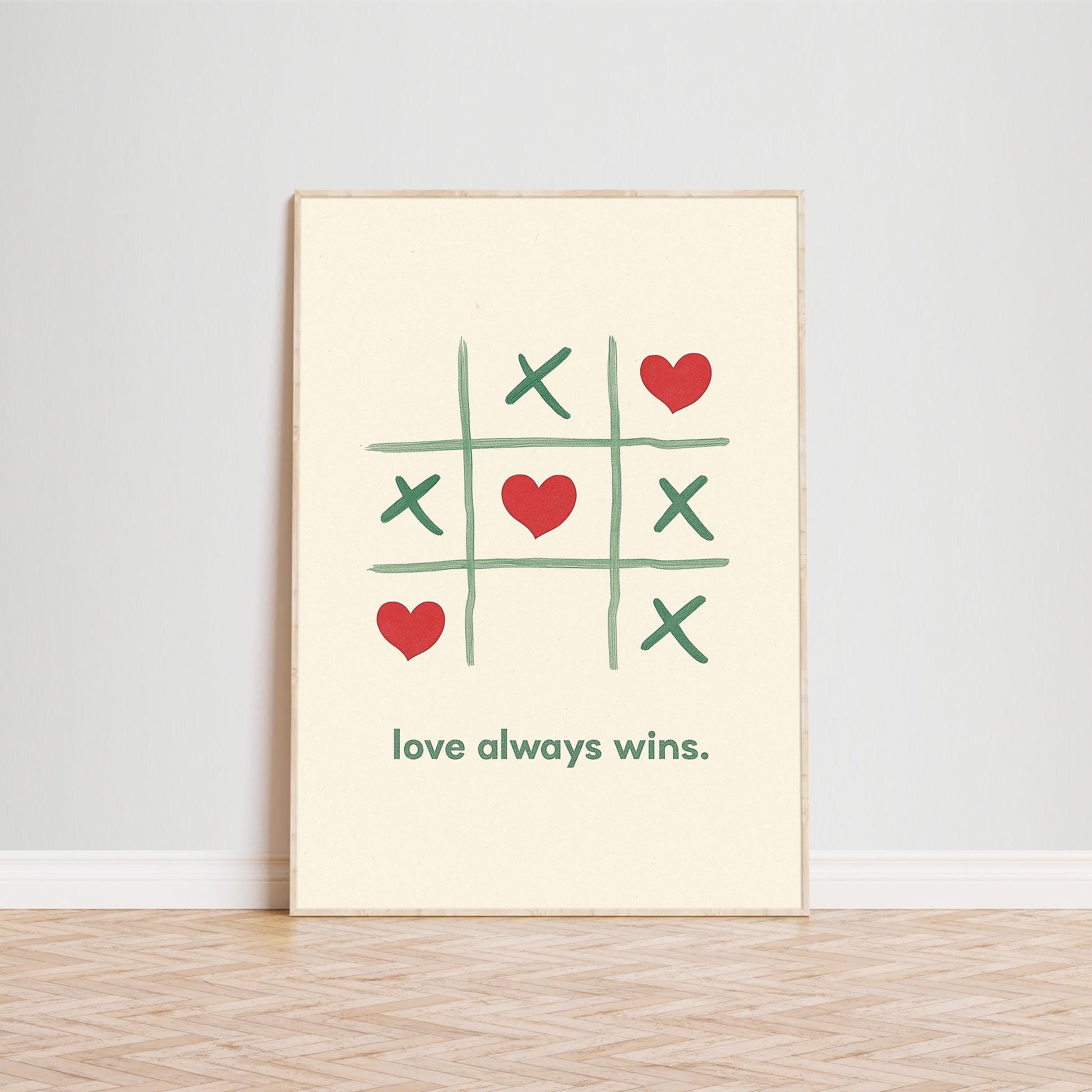 Love Always Wins Poster – Minimalist Romantic Quote Print, Heart Wall Art