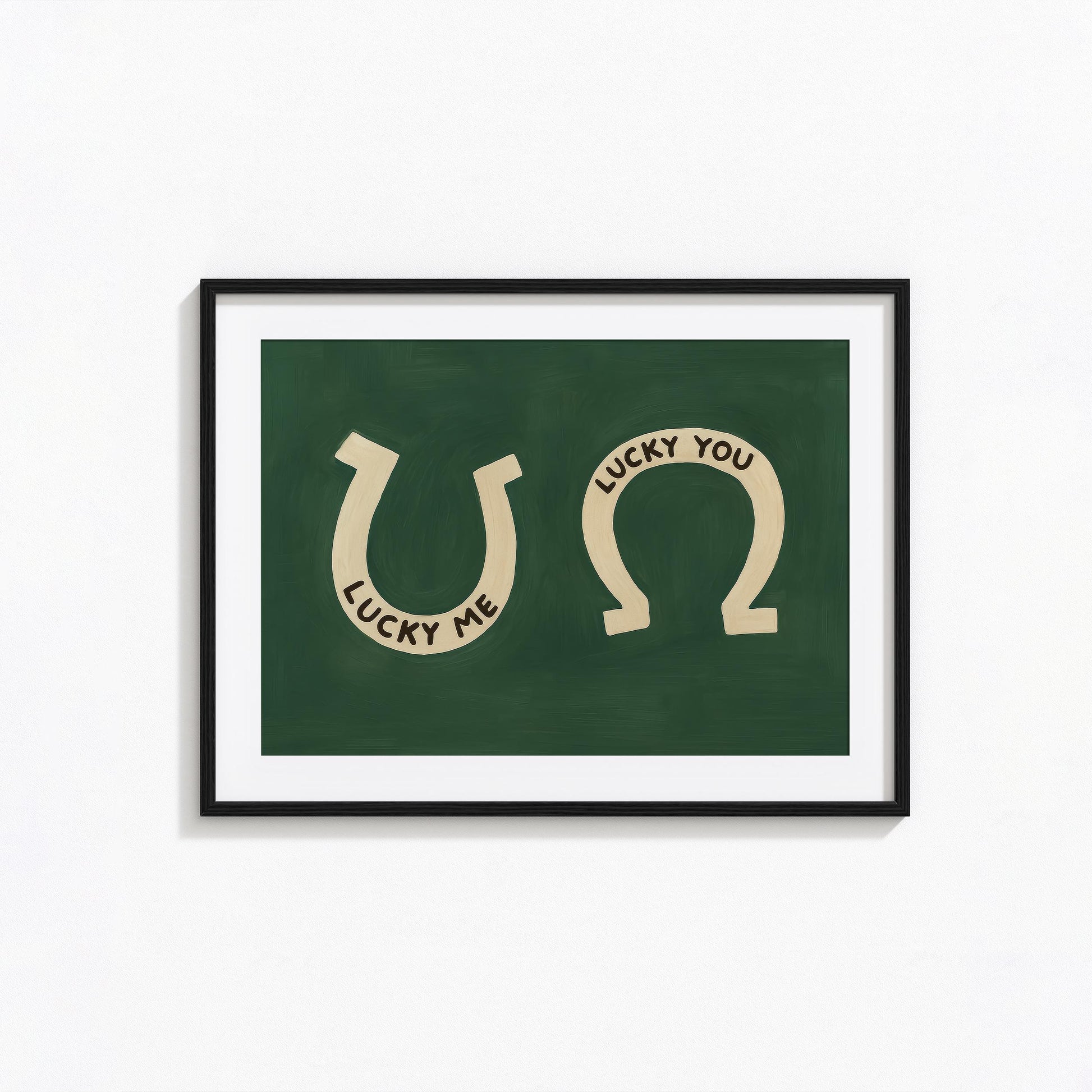Lucky Horseshoe Wall Art – Vintage Golden Horseshoe Poster With Dark Green Retro Charm