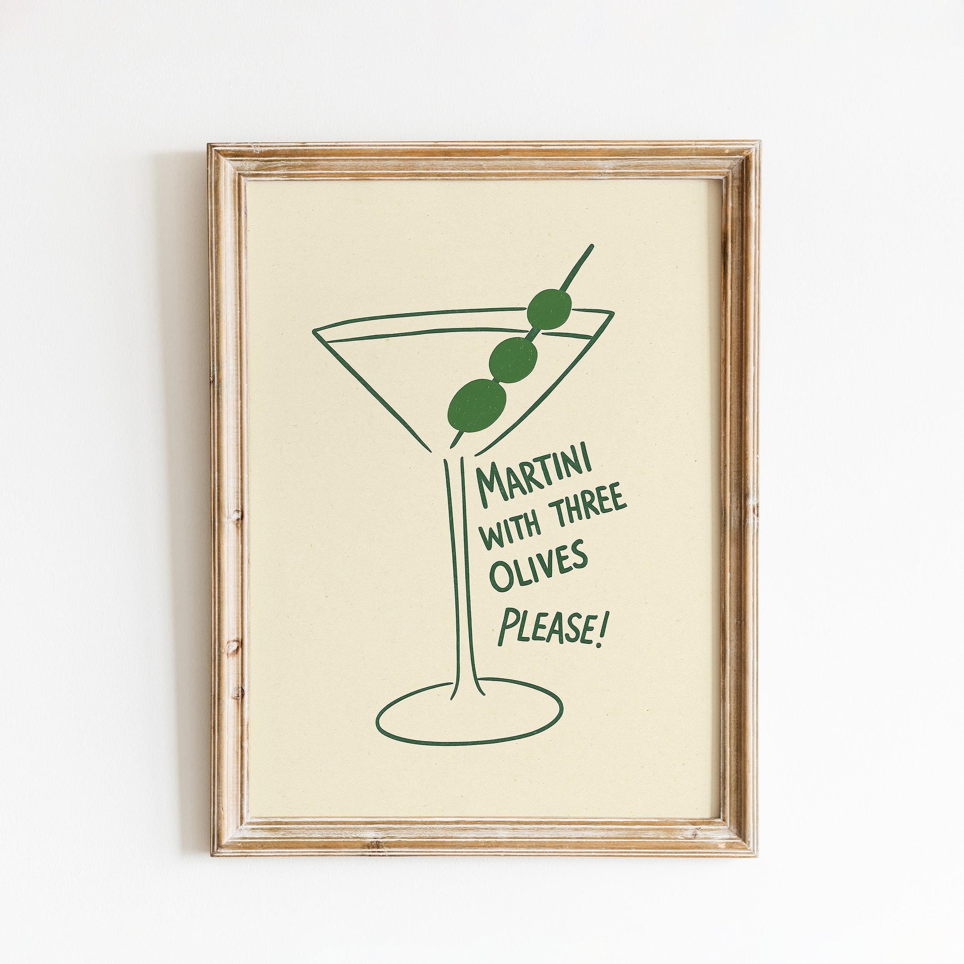 Martini with Three Olives – Minimal Cocktail Line Art Print, Vintage Bar Poster