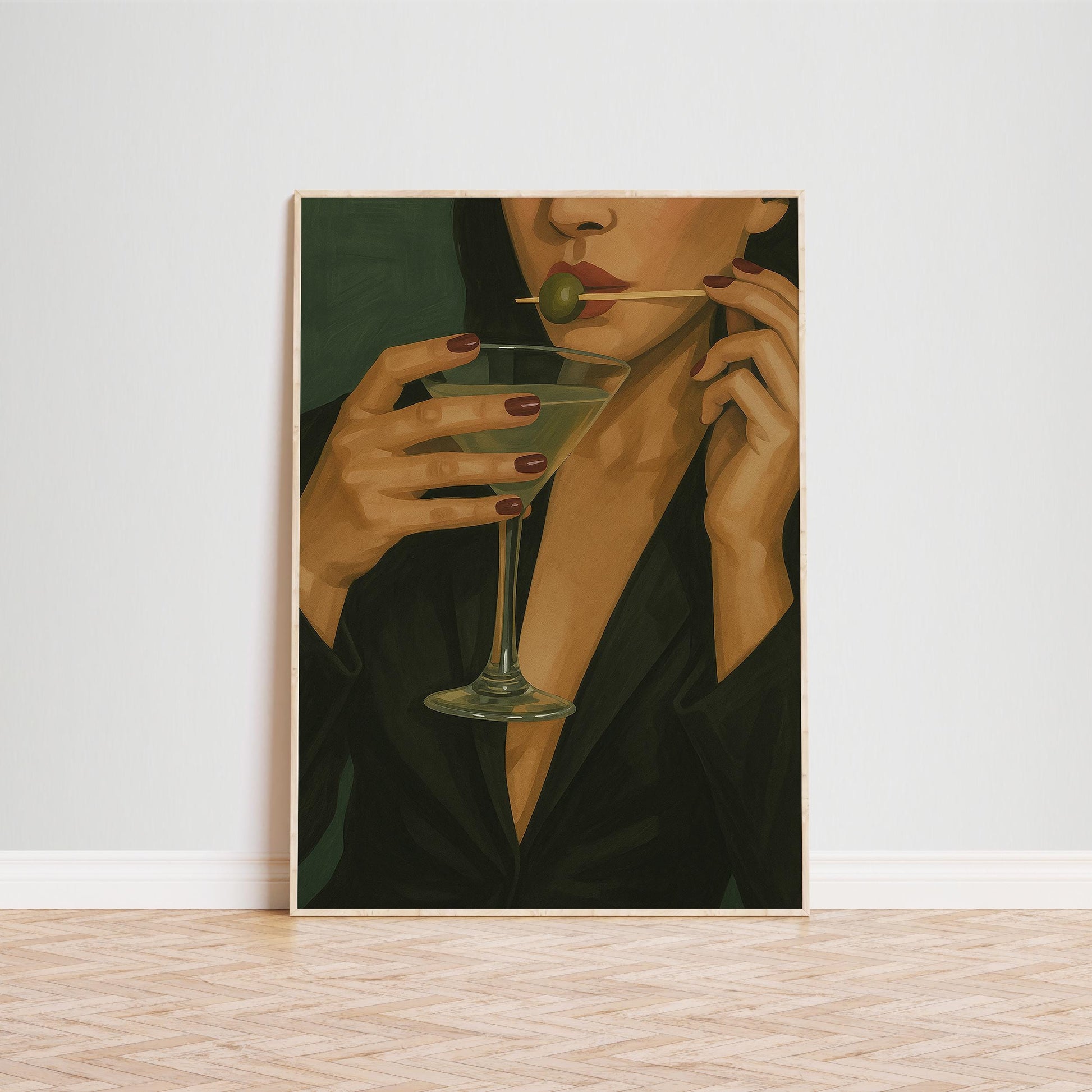 Martini Woman Poster – Elegant Dark Feminine Art | Chic Lounge Wall Decor