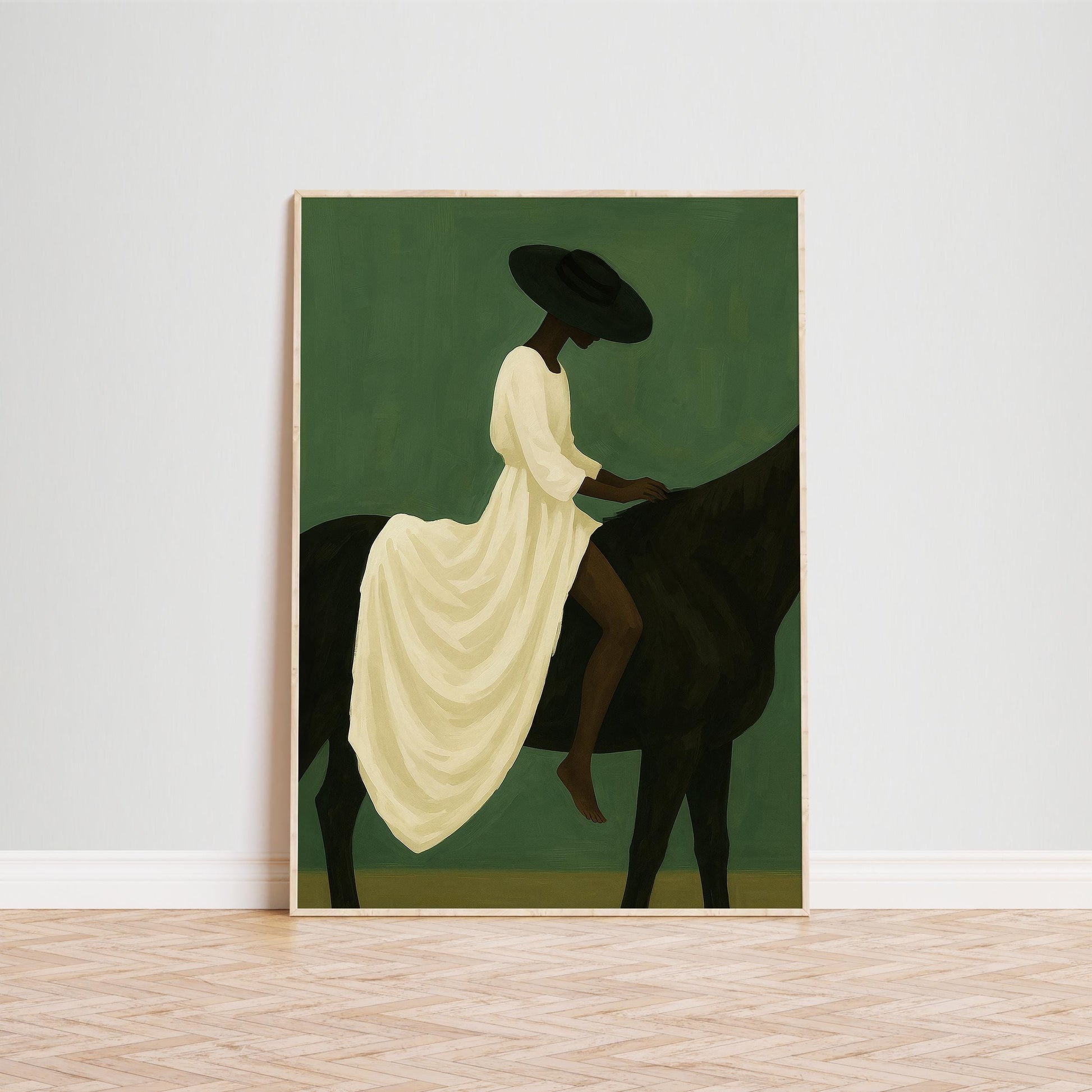 Minimal Western Art Print – Elegant Feminine Silhouette Horse Poster | Rustic Chic Decor