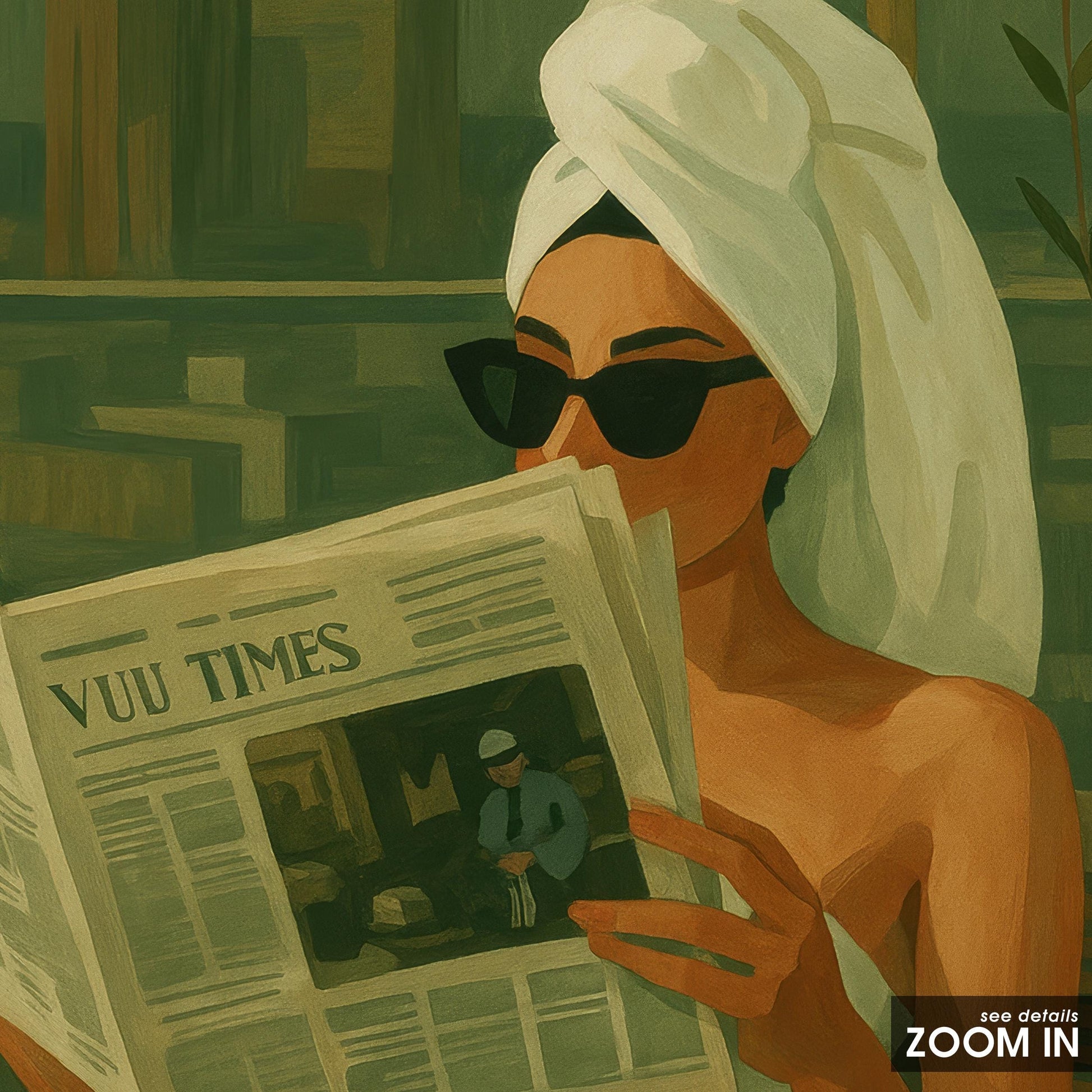 Modern Feminine Wall Art – Urban Balcony Art | Green Cityscape Poster Print