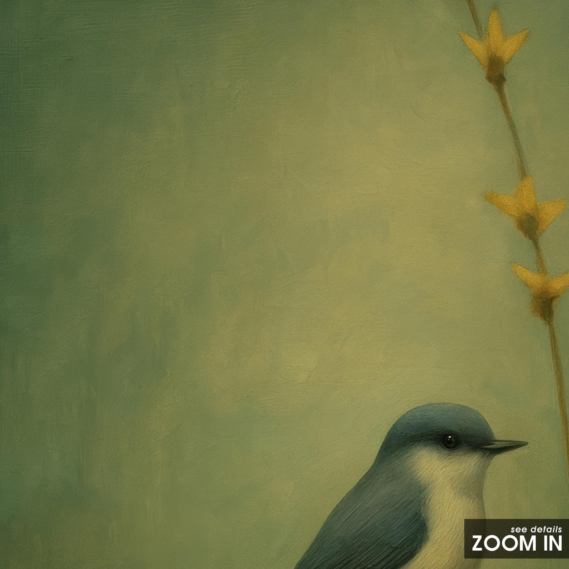 Moody Green Wall Art – Serene Bird Wall Print With Yellow Flower Art
