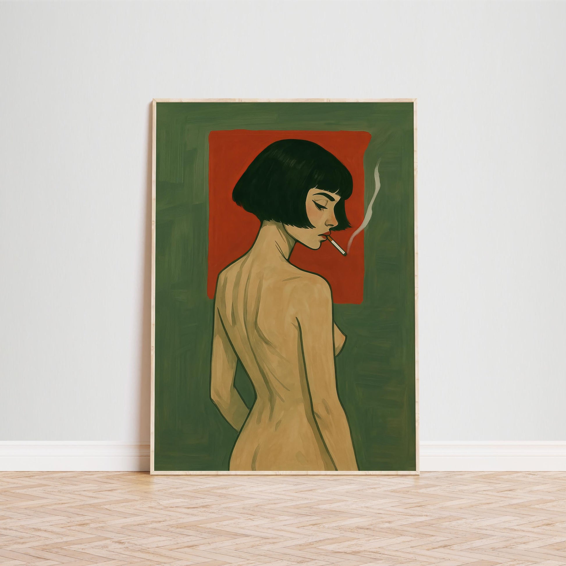 Moody Nude Woman Poster – Bold Retro Wall Art With Dark Feminine Energy