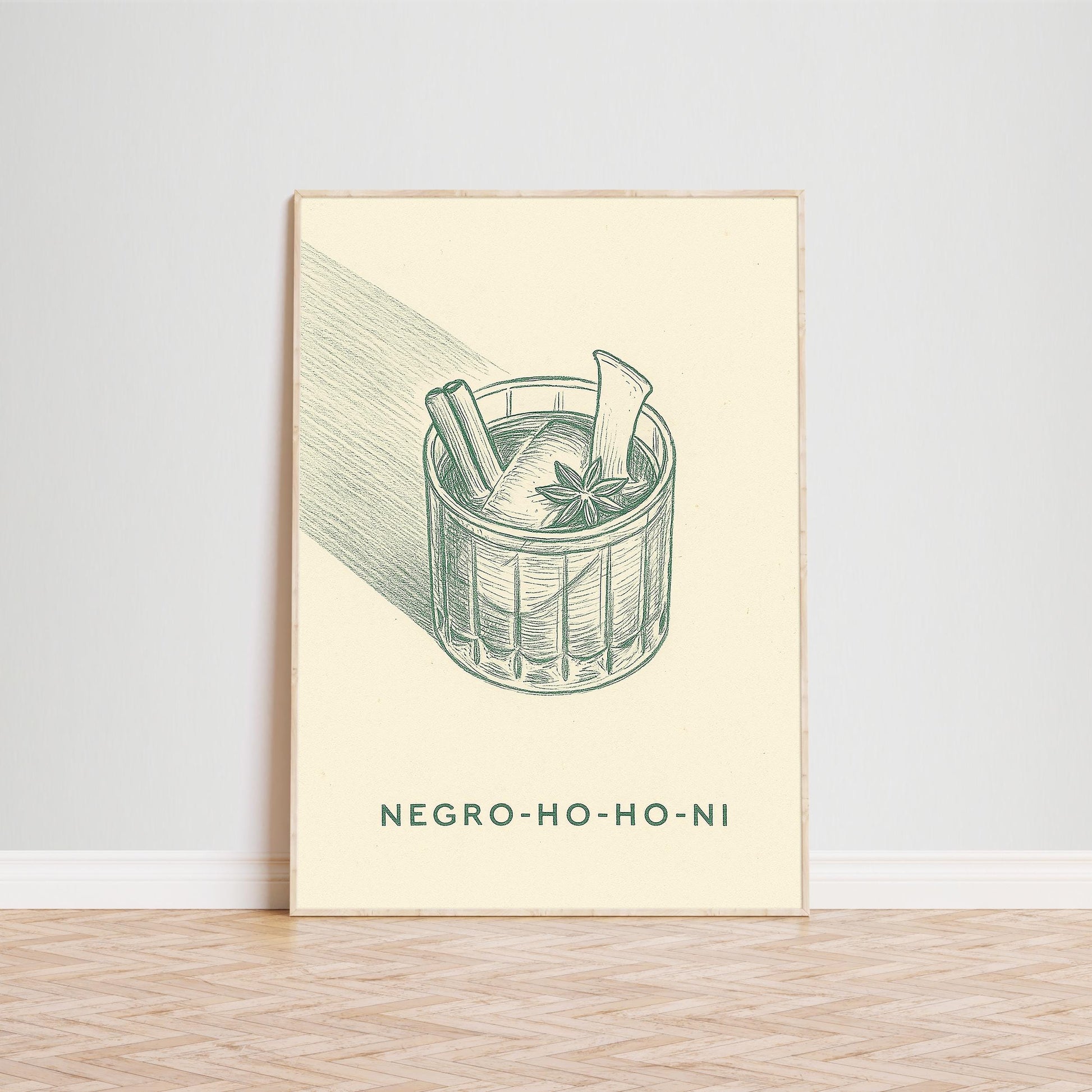 Holiday Negroni Poster – Vintage Cocktail Print | Festive Drink Art Decor