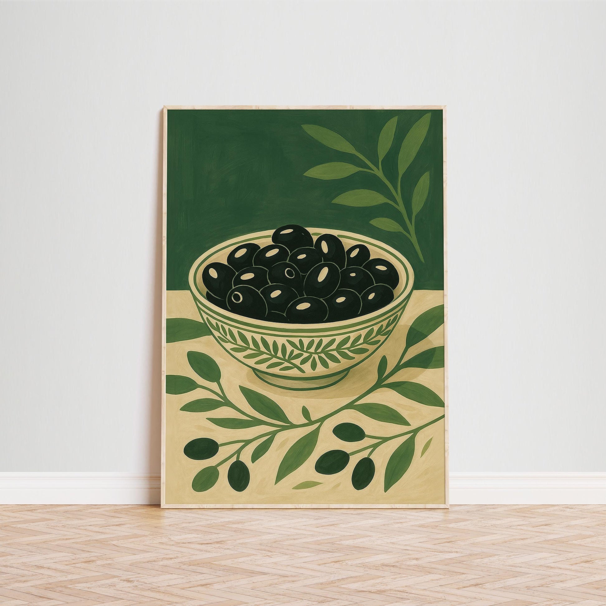 Olive Bowl Poster – Mediterranean Kitchen Art | Rustic Farmhouse Wall Print