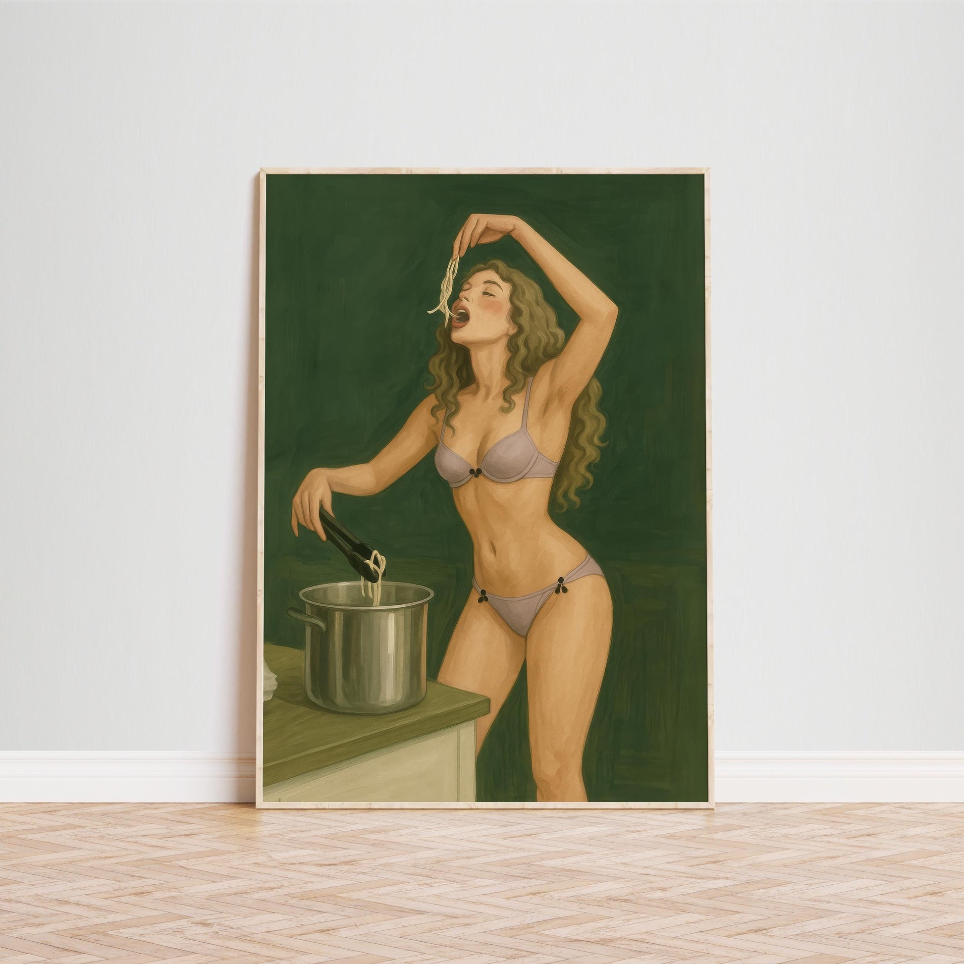 Pasta Lover Art Print – Retro Kitchen Decor | Sensual Cooking Wall Art