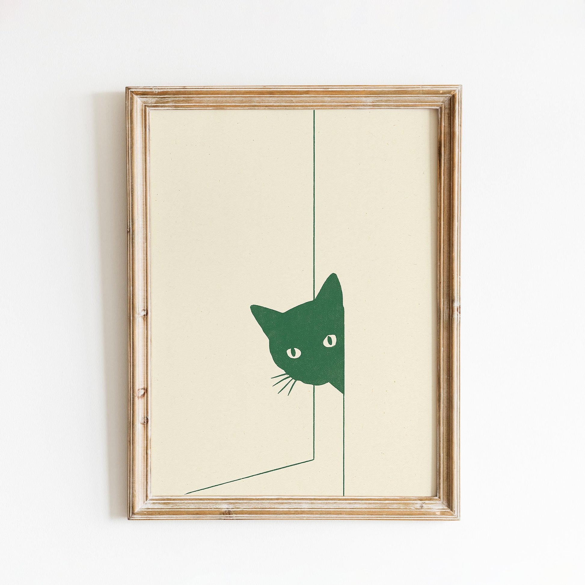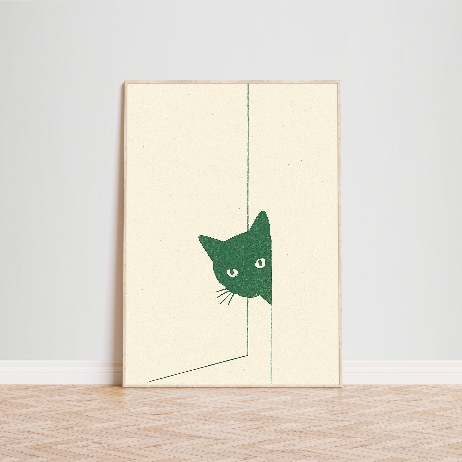 Peeking Cat Minimal Poster – Modern Line Art Wall Print, Cozy Neutral Home Decor