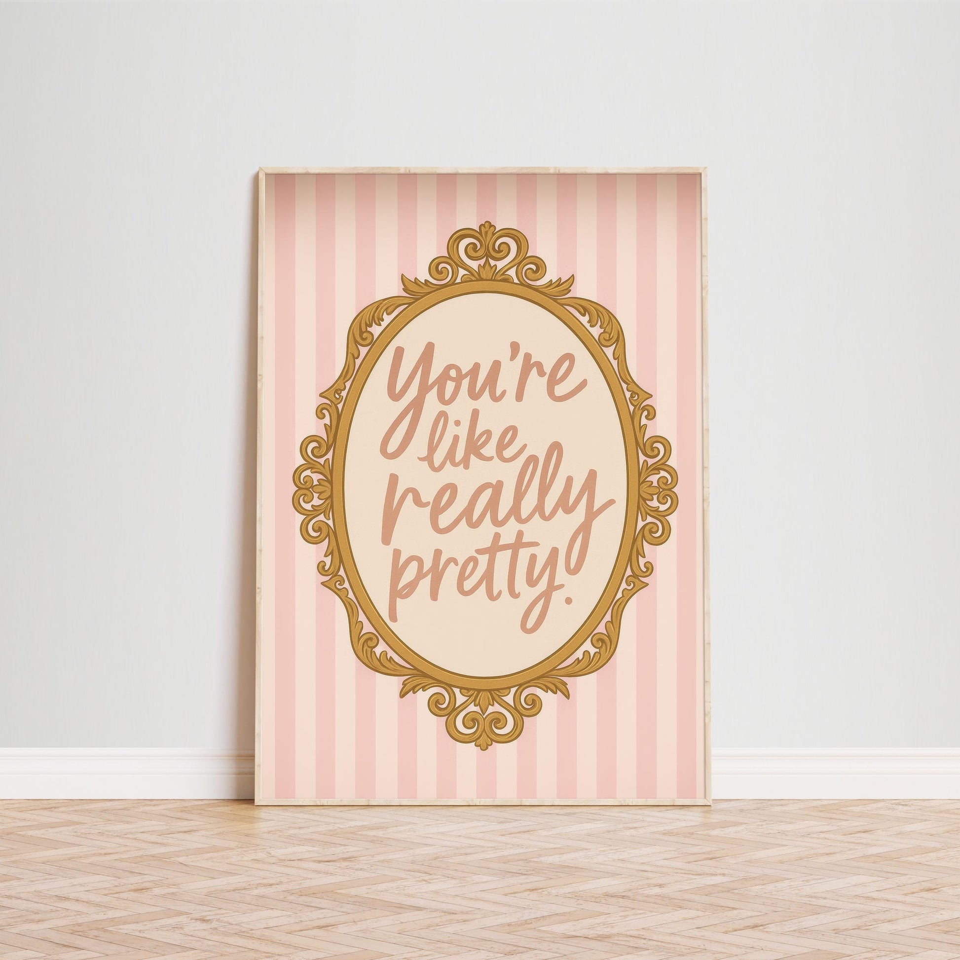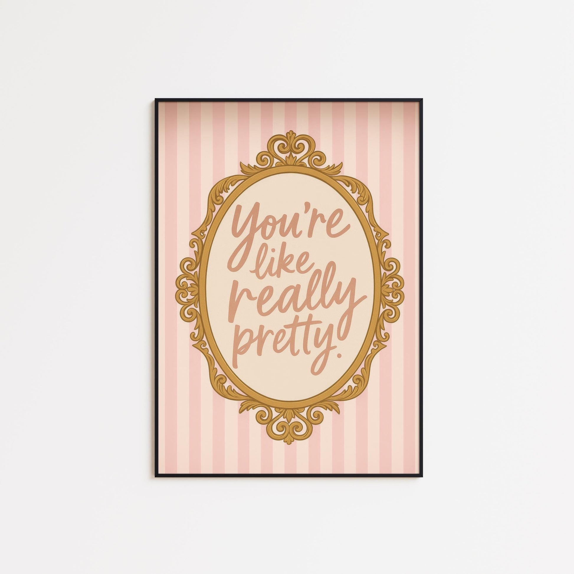 Pink Barbiecore Poster – Girly Wall Decor with Retro Gold Frame & Playful Quote
