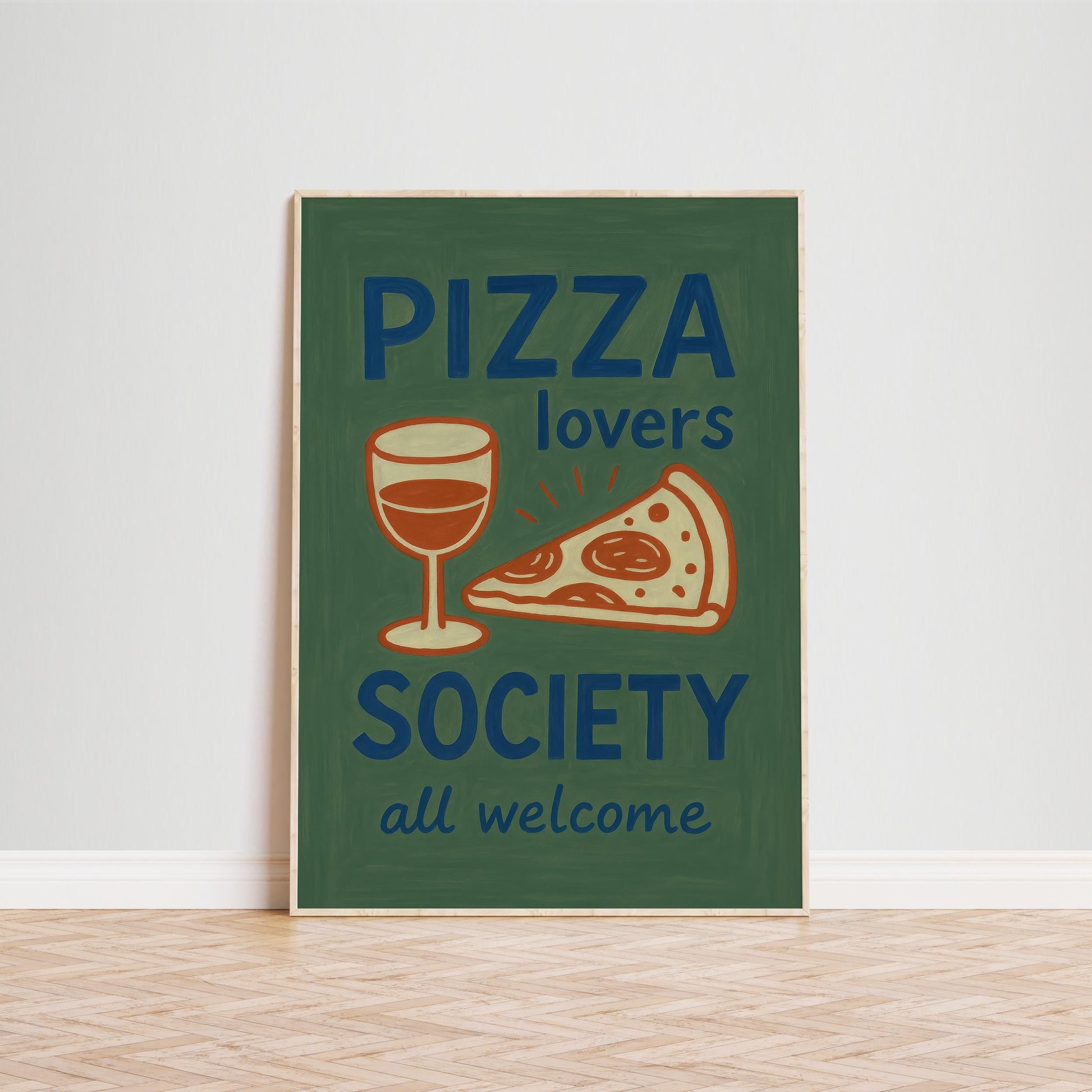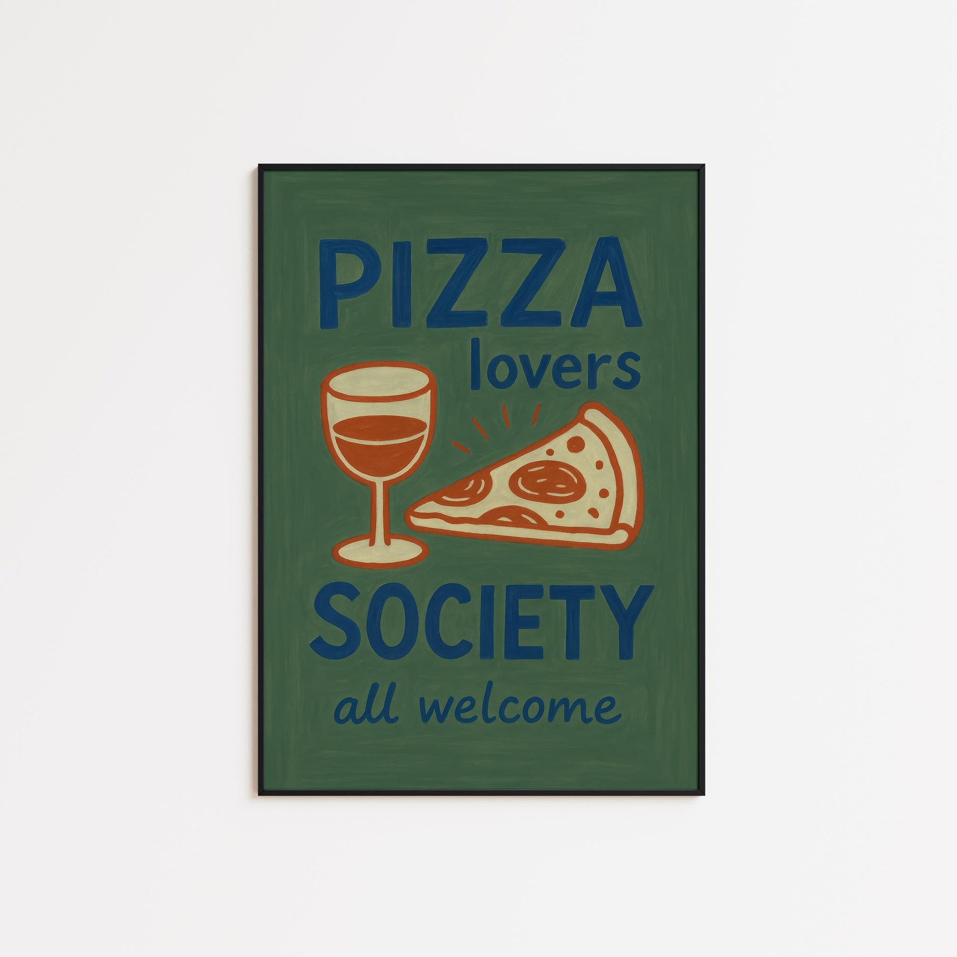 Pizza Lovers Poster – Retro Kitchen Art | Funny Pizza Wine Wall Art Print