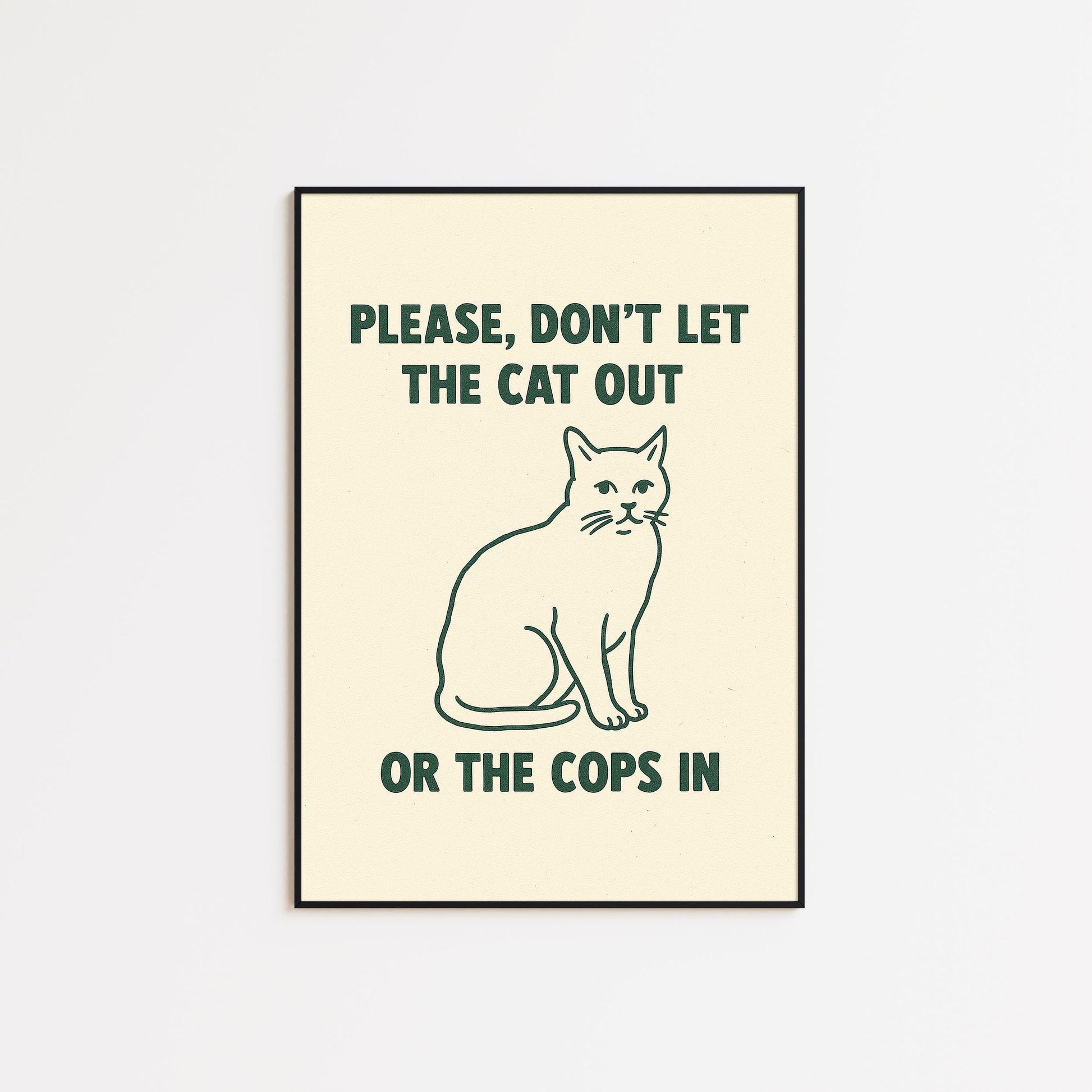 Please Don’t Let the Cat Out or the Cops In Poster – Funny Cat Lover Wall Art