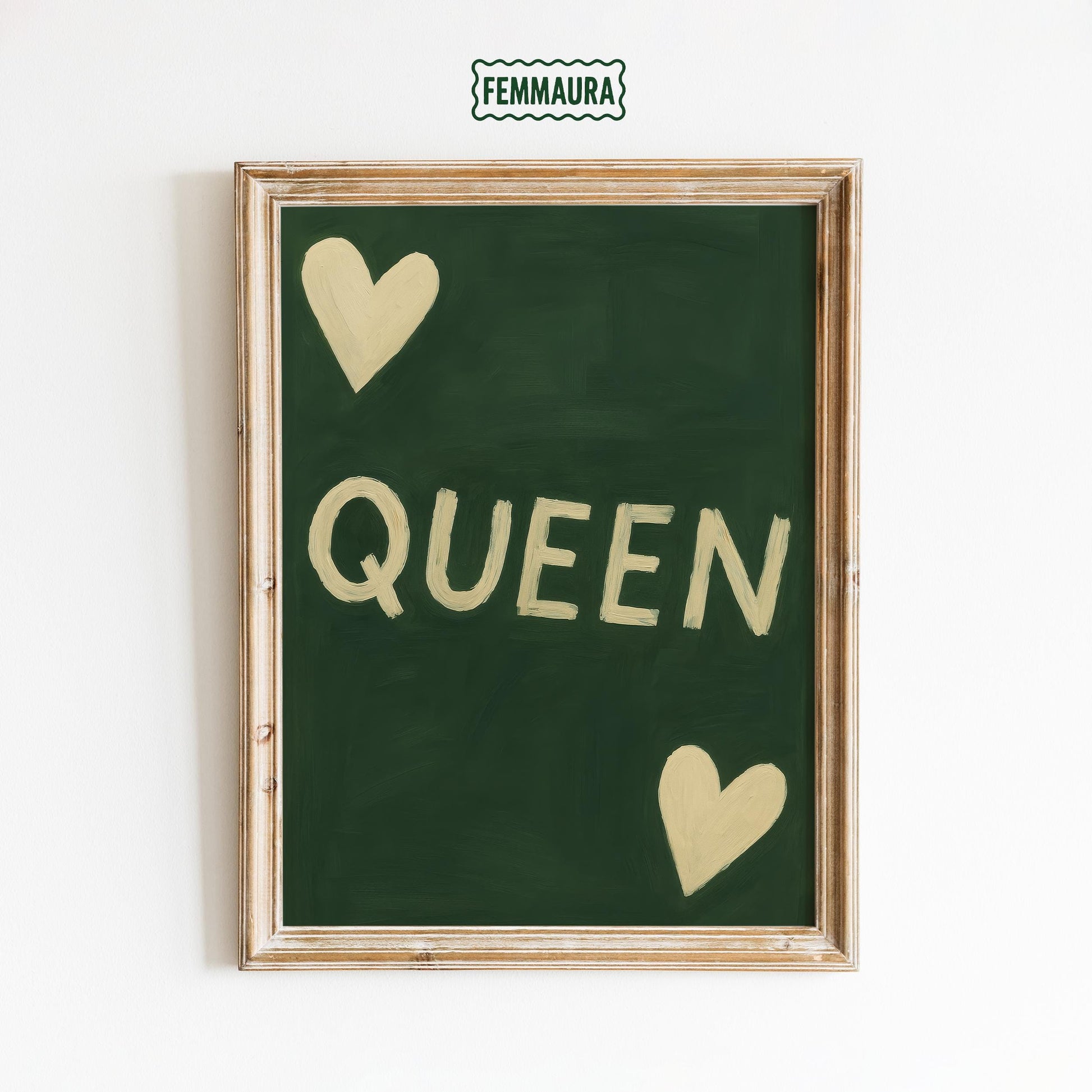 Queen Typography Art – Bold Wall Print With Heart Accent & Feminist Style