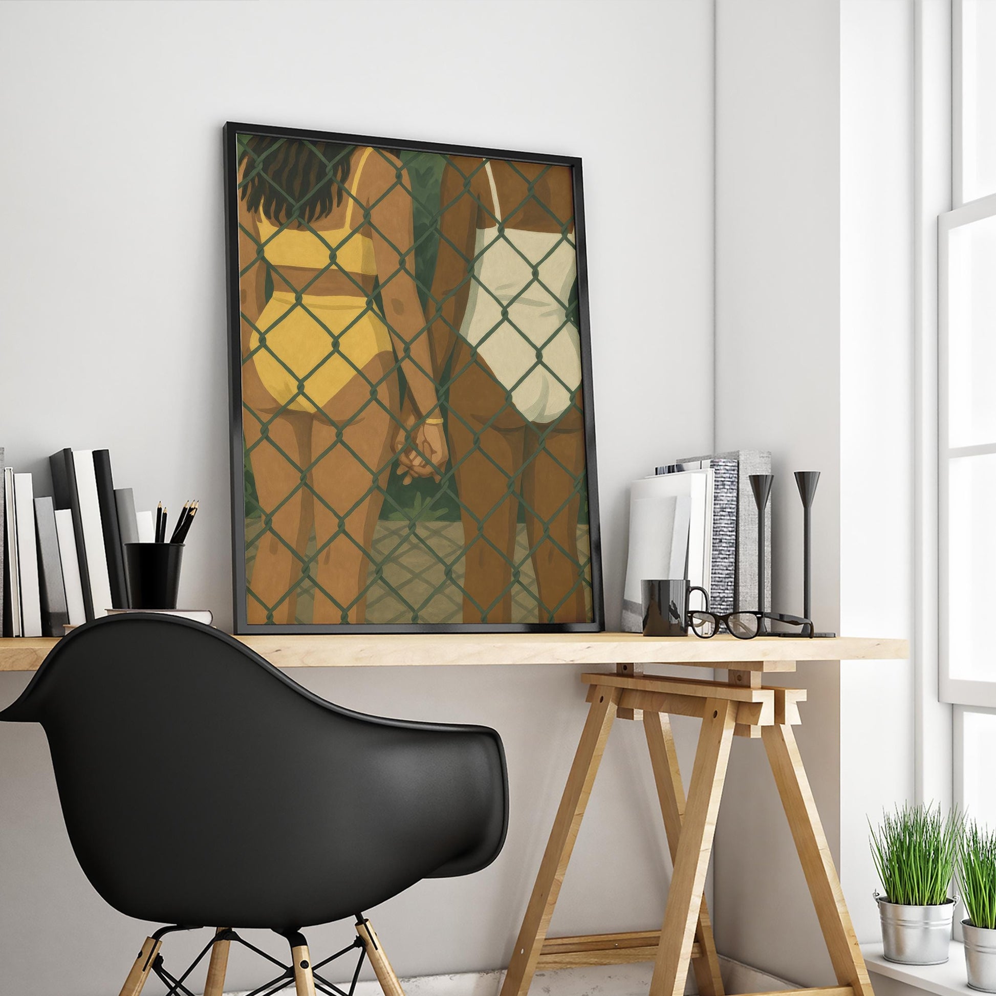 Queer Love Wall Art – LGBTQ Couple Print | Summer Poolside Intimacy Decor
