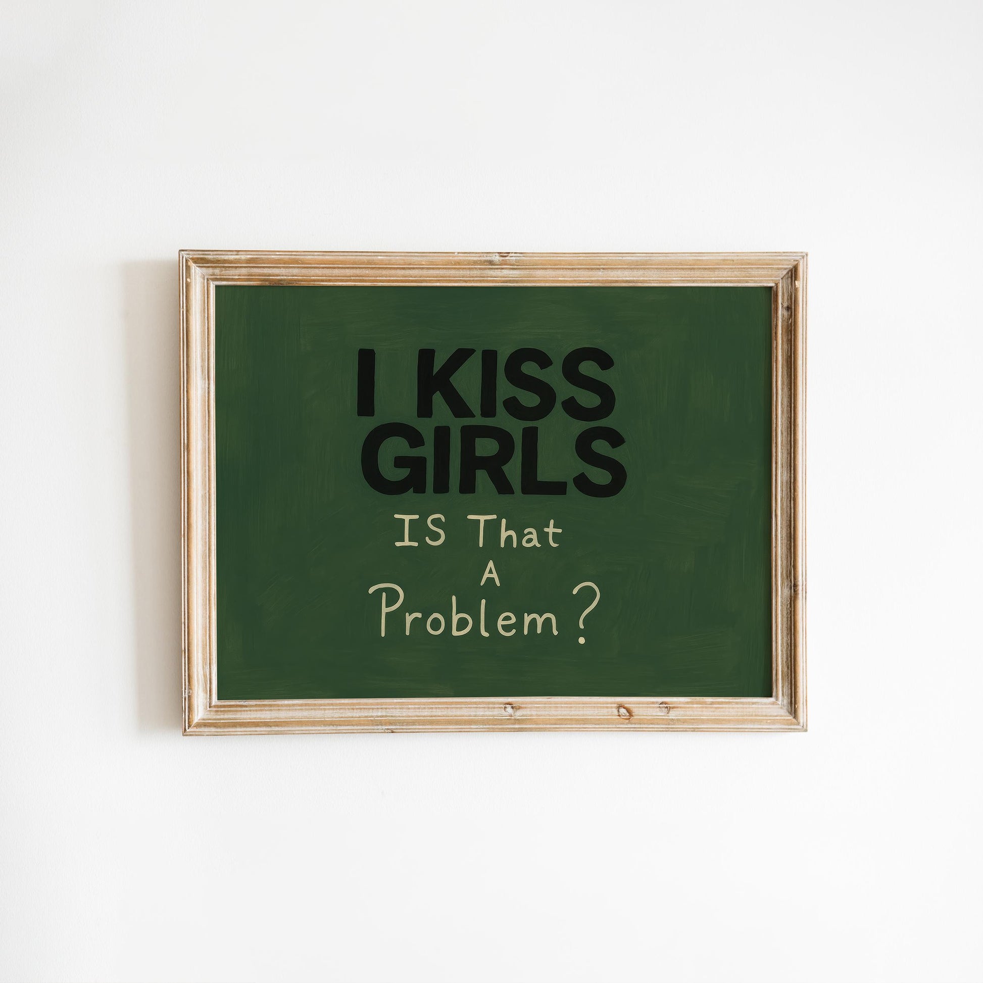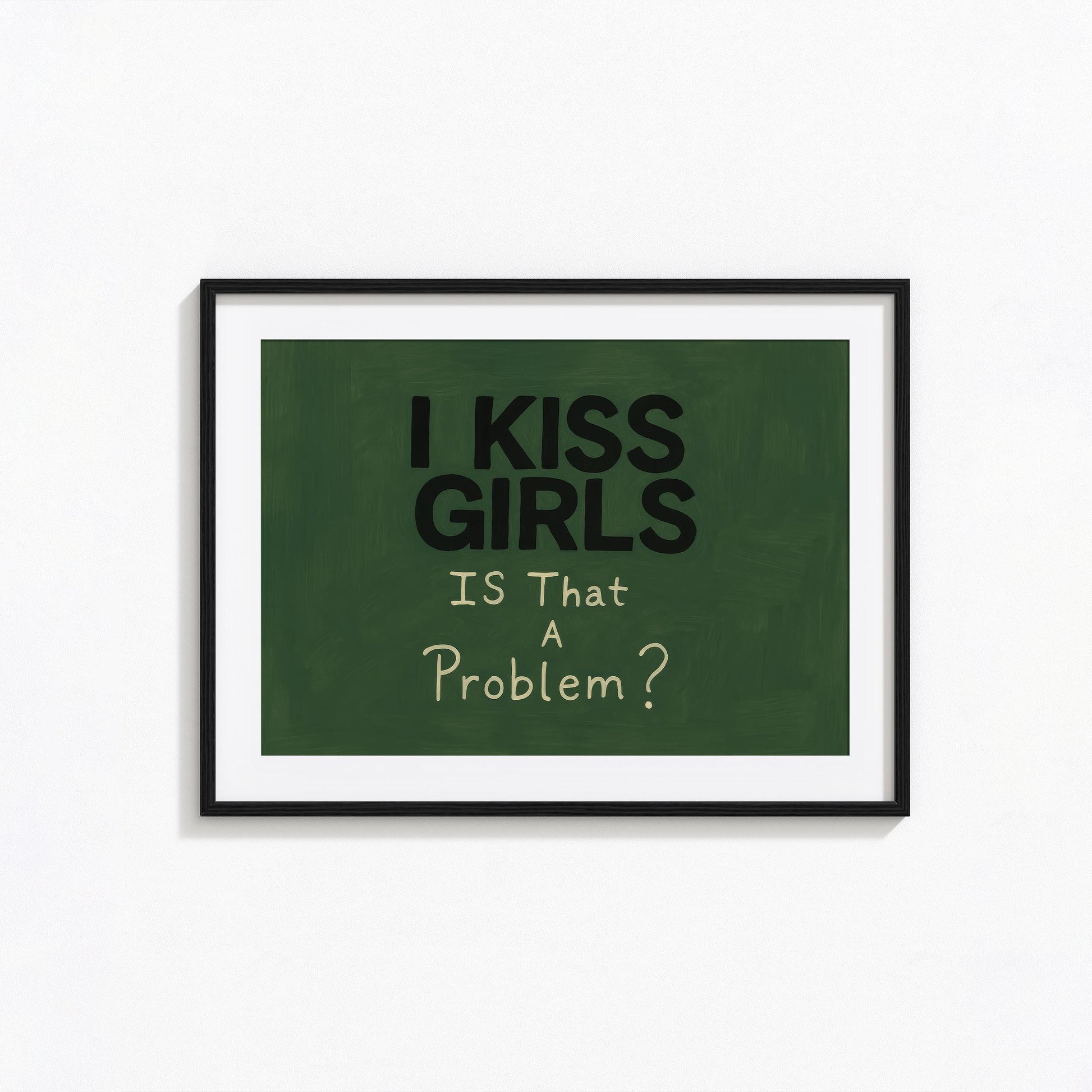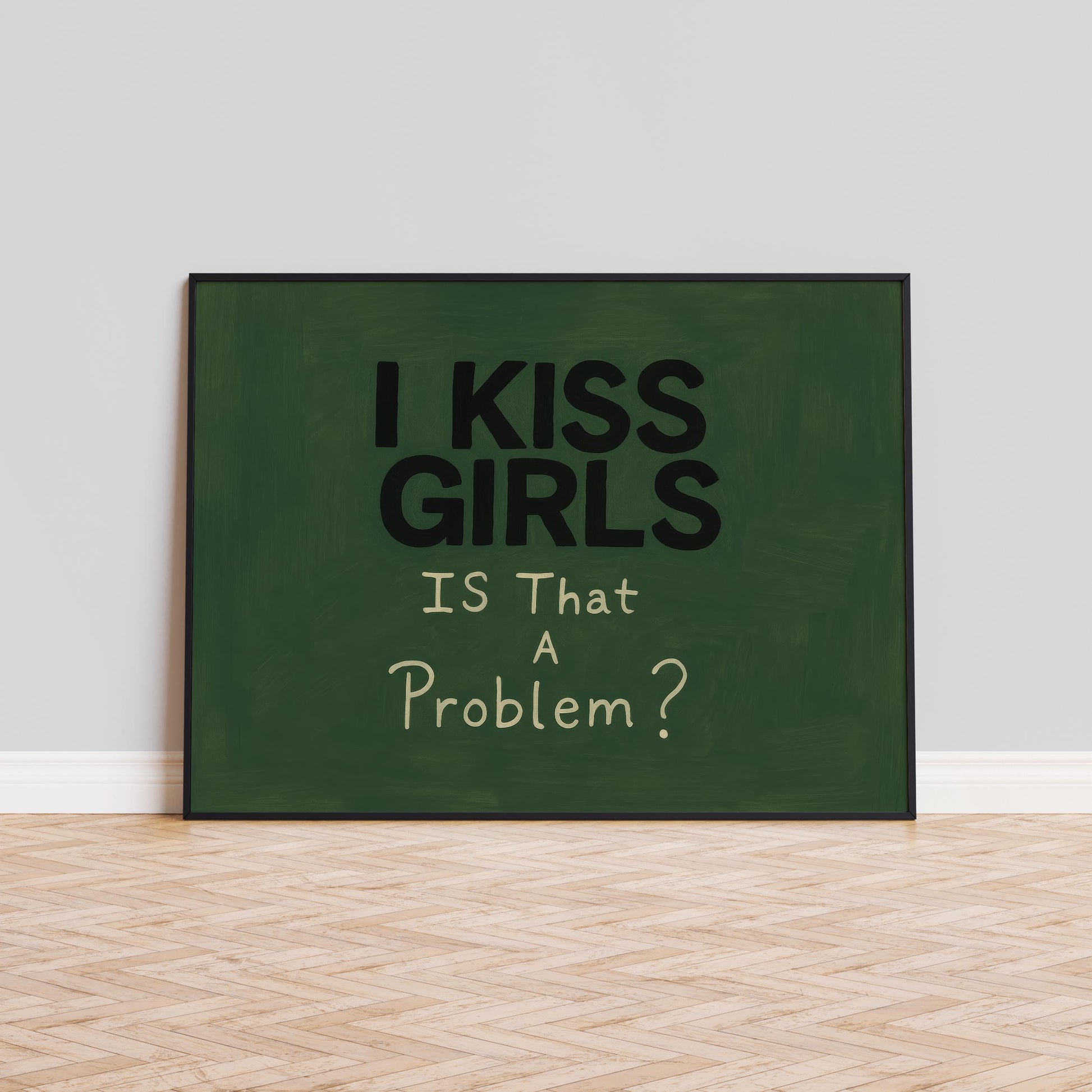 Queer Pride Poster – Bold Lesbian Wall Decor with Dark Green Background Art