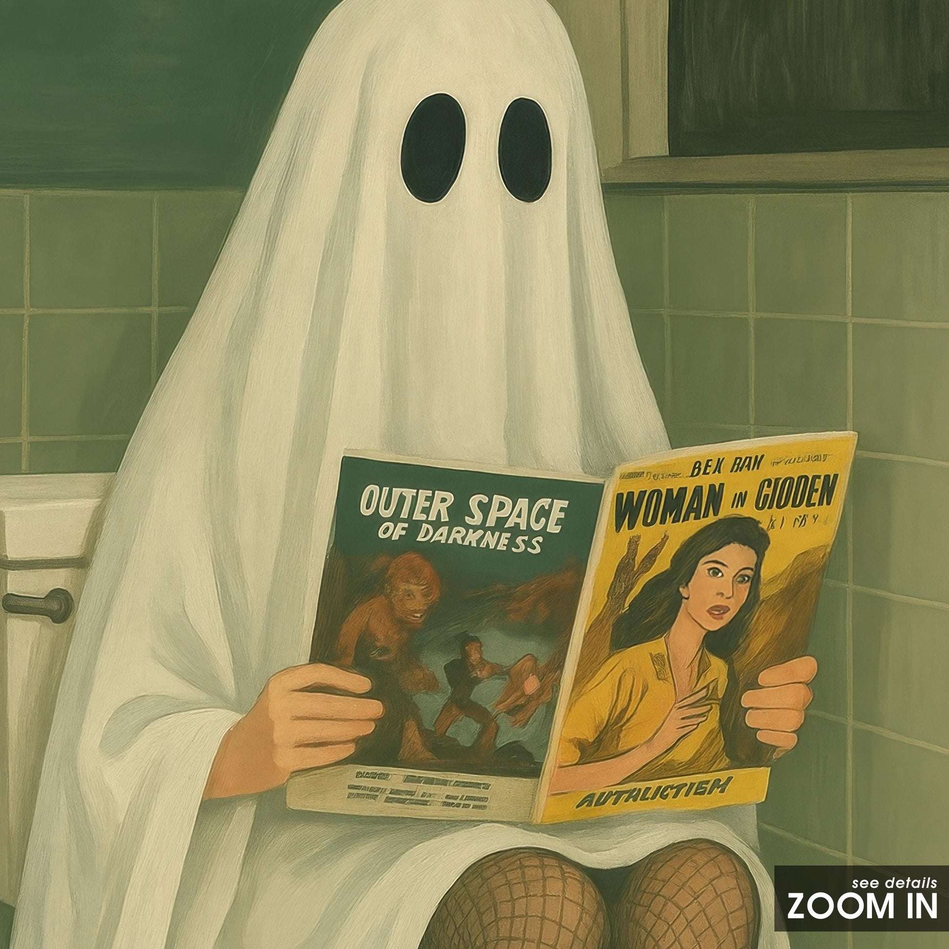 Quirky Bathroom Wall Art – Surreal Funny Ghost Print With Moody Green Tiles