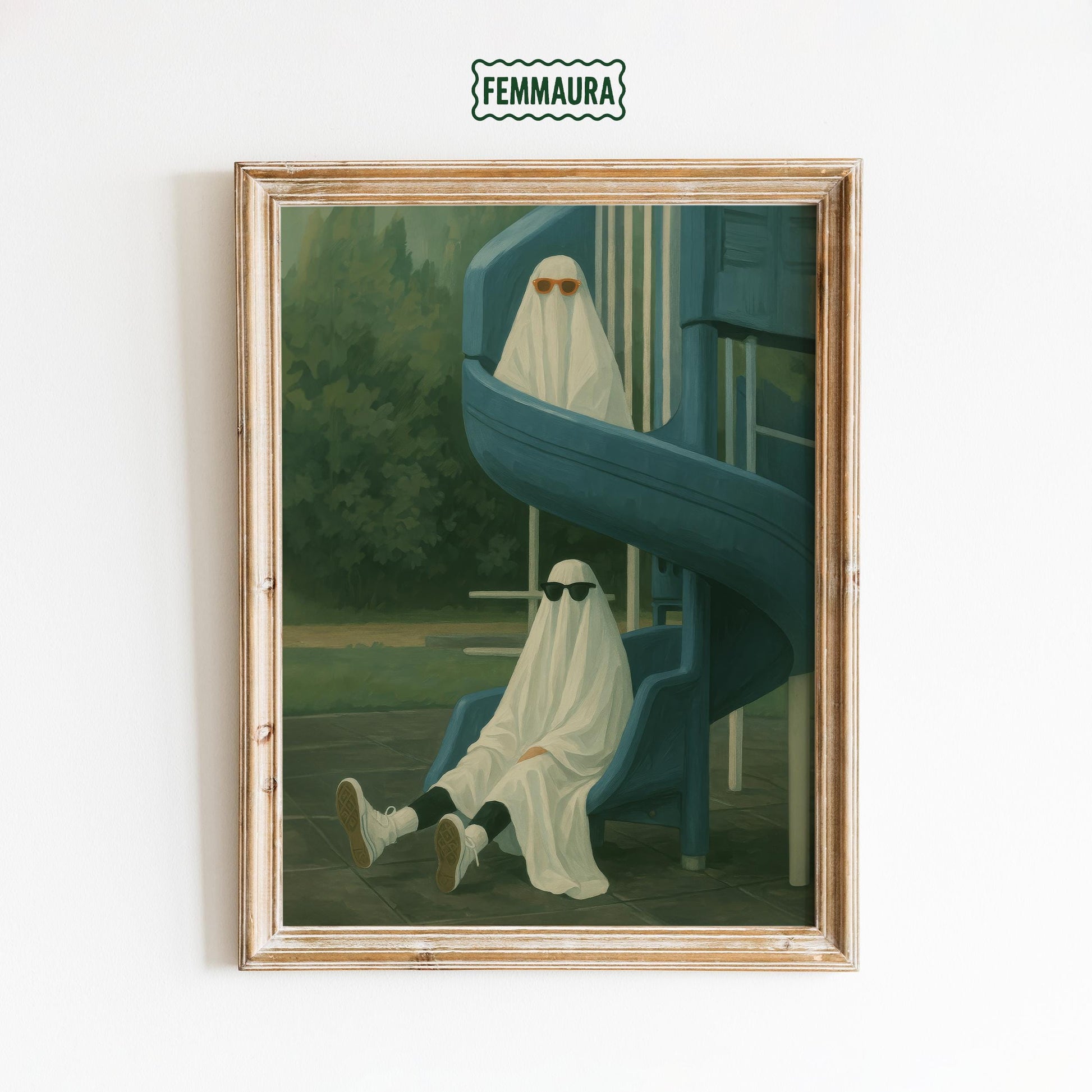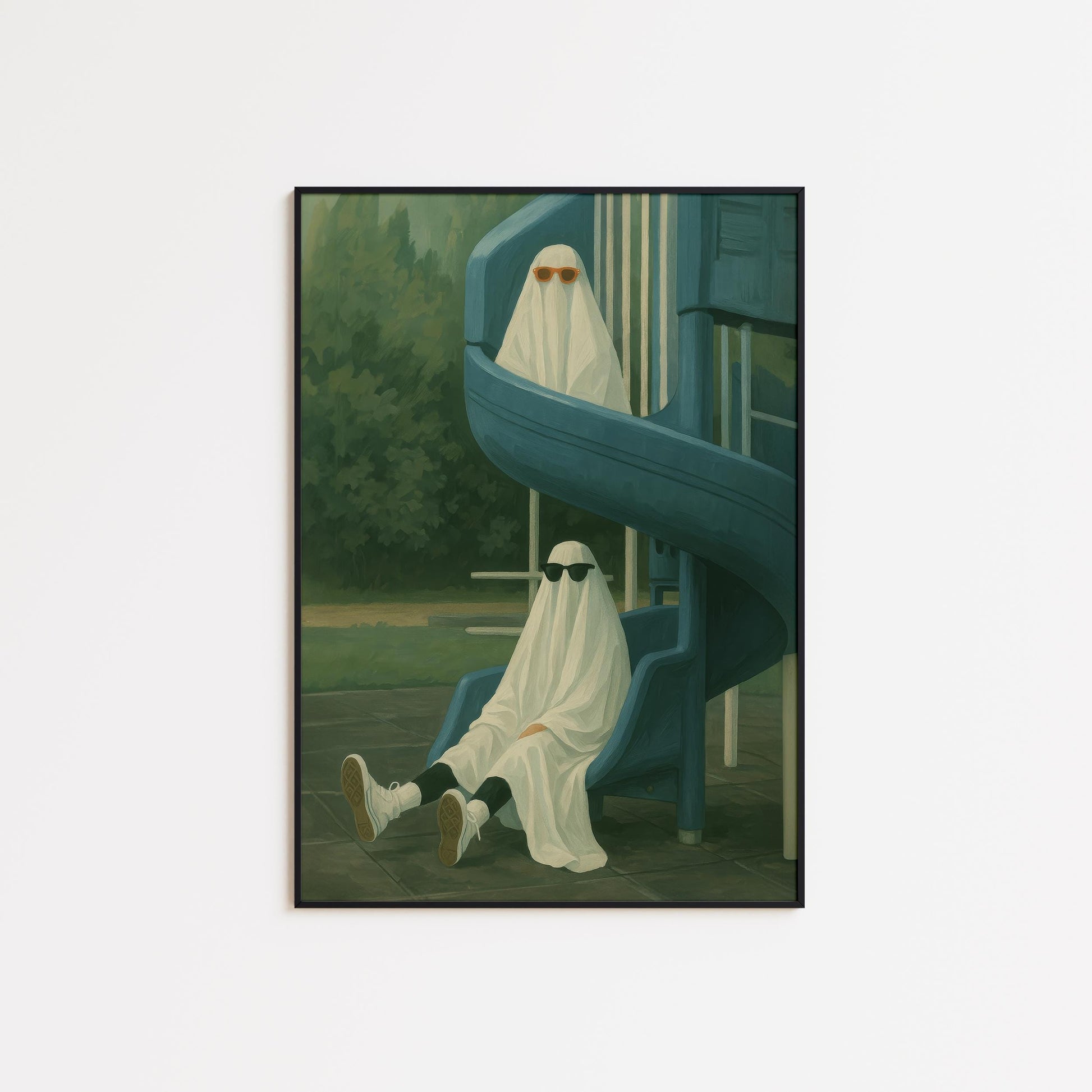 Quirky Gothic Wall Art – Funny Ghost Print With Moody Playground Scene
