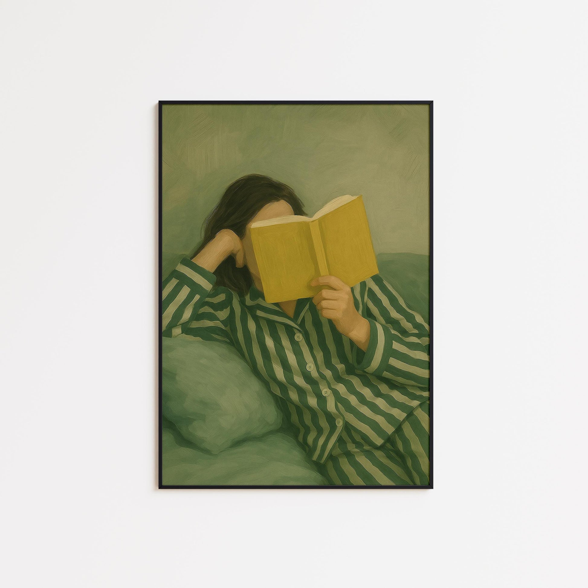 Reading Woman Poster – Cozy Wall Art | Minimalist Decor, Soft Green Artwork