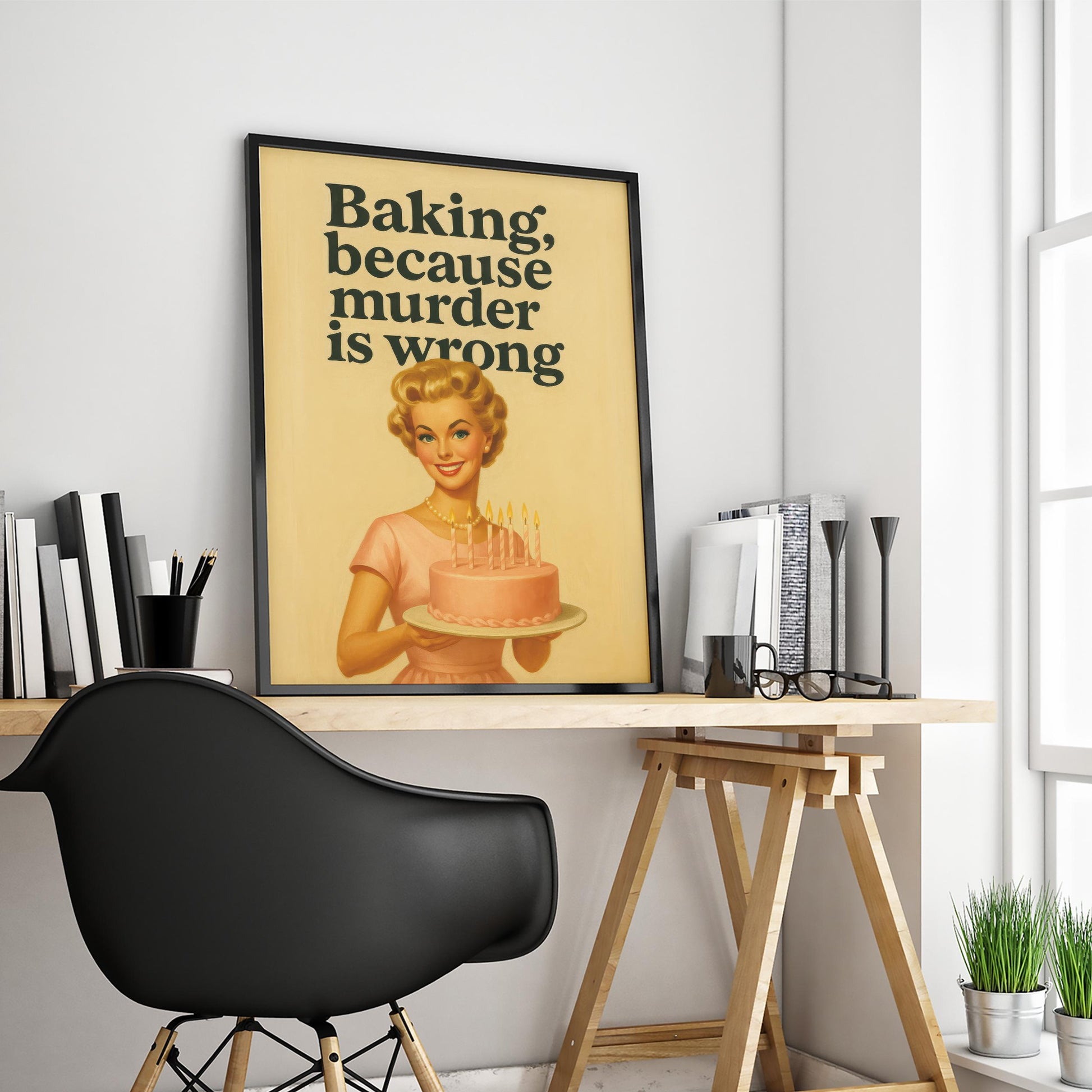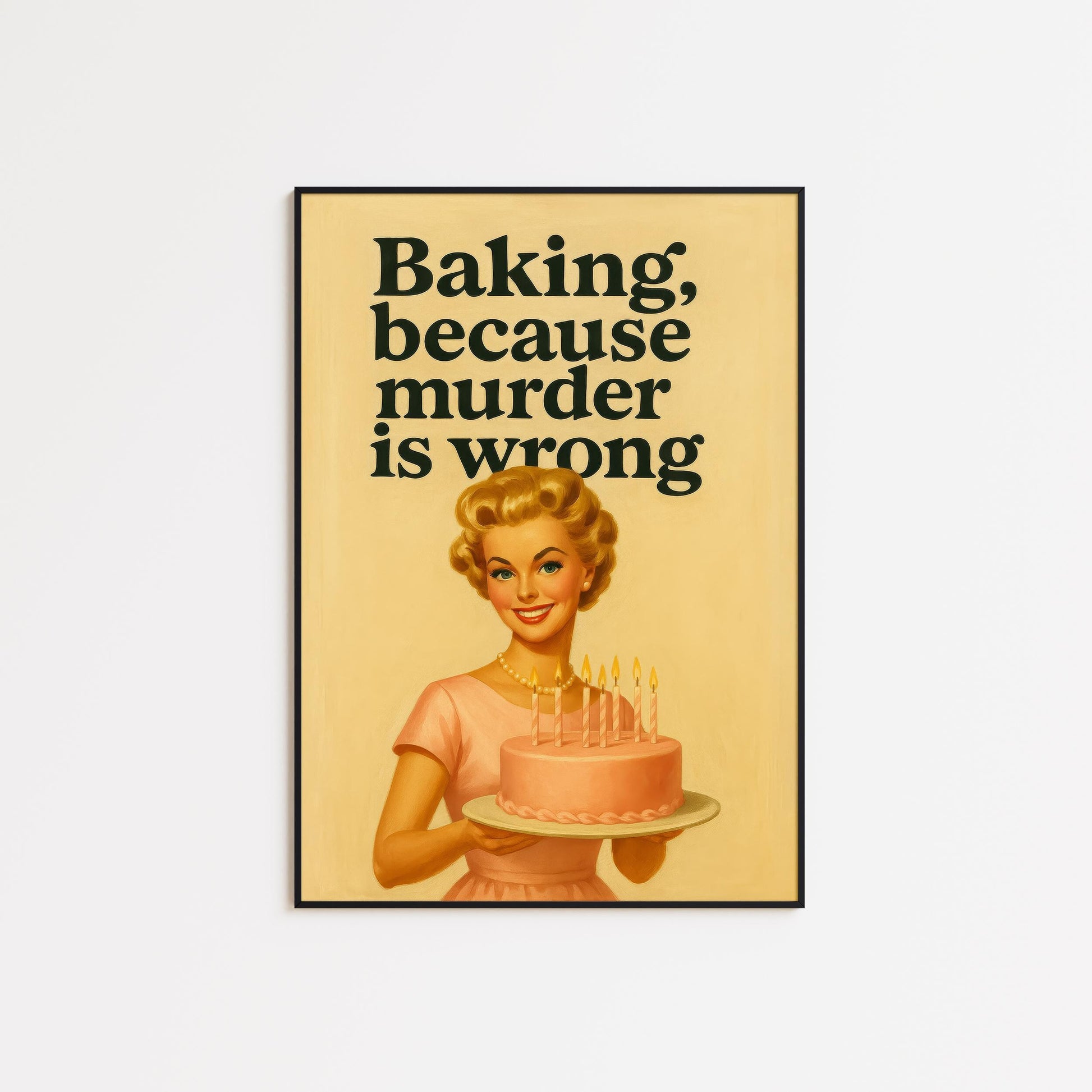 Retro Baking Poster – Funny Kitchen Art | Yellow Vintage Baker Gift Wall Print