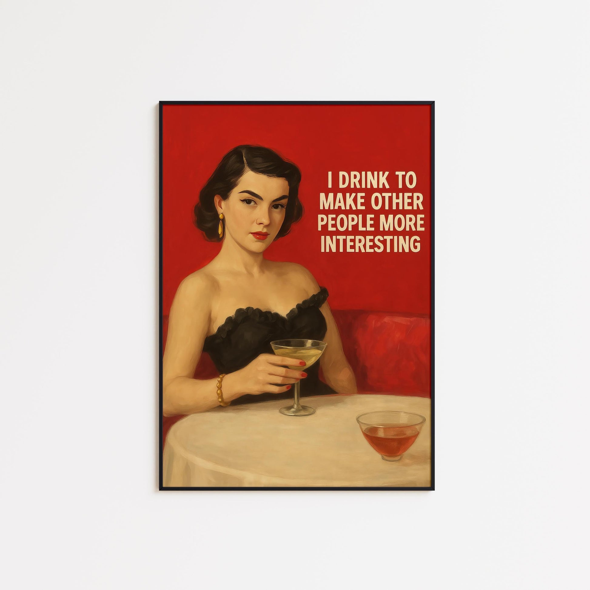 Retro Bar Poster – Sarcastic Wall Art With Vintage Drink Quote & Chic Style