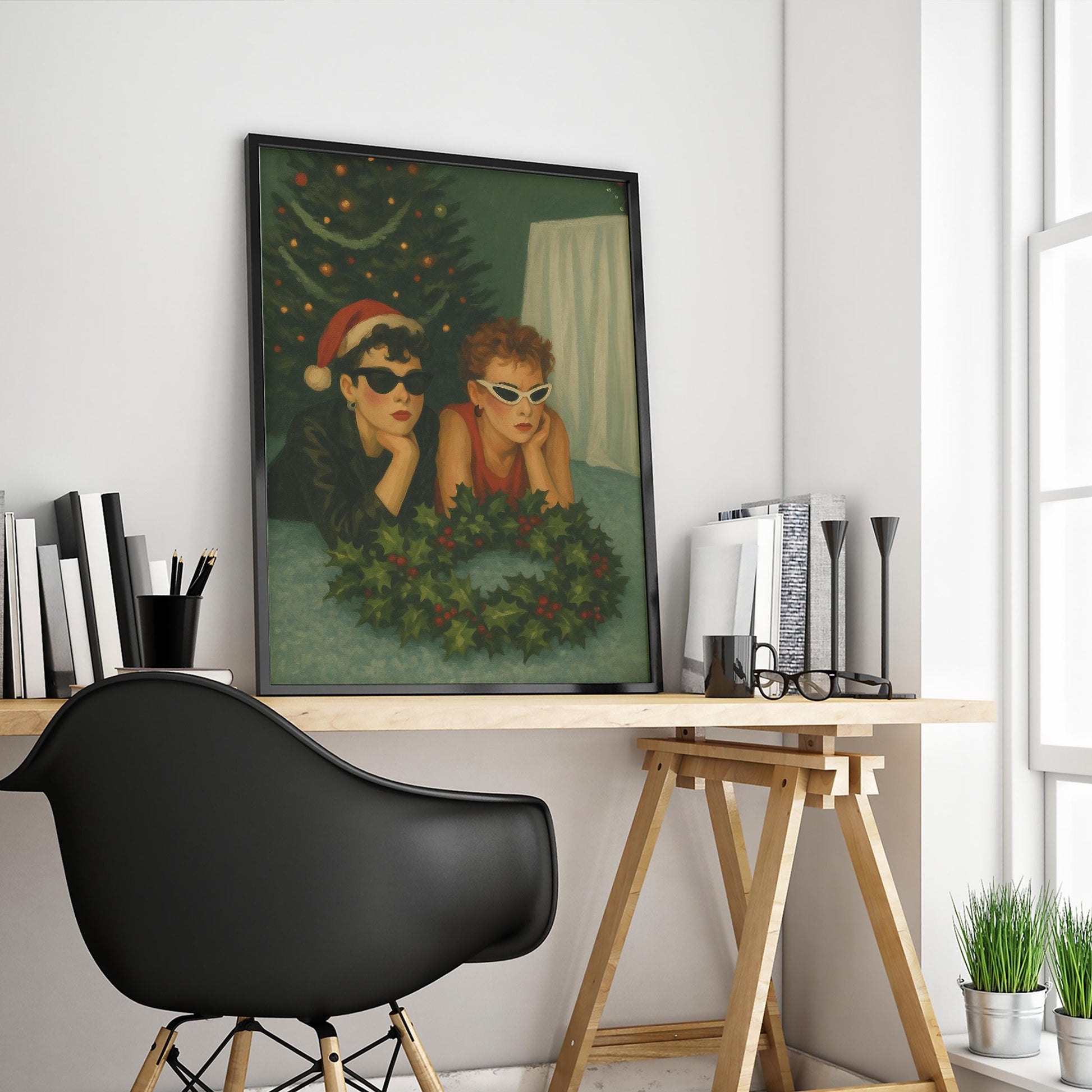 Retro Christmas Poster – Cool Girls Artwork | Festive Retro Decor Wall Art Print