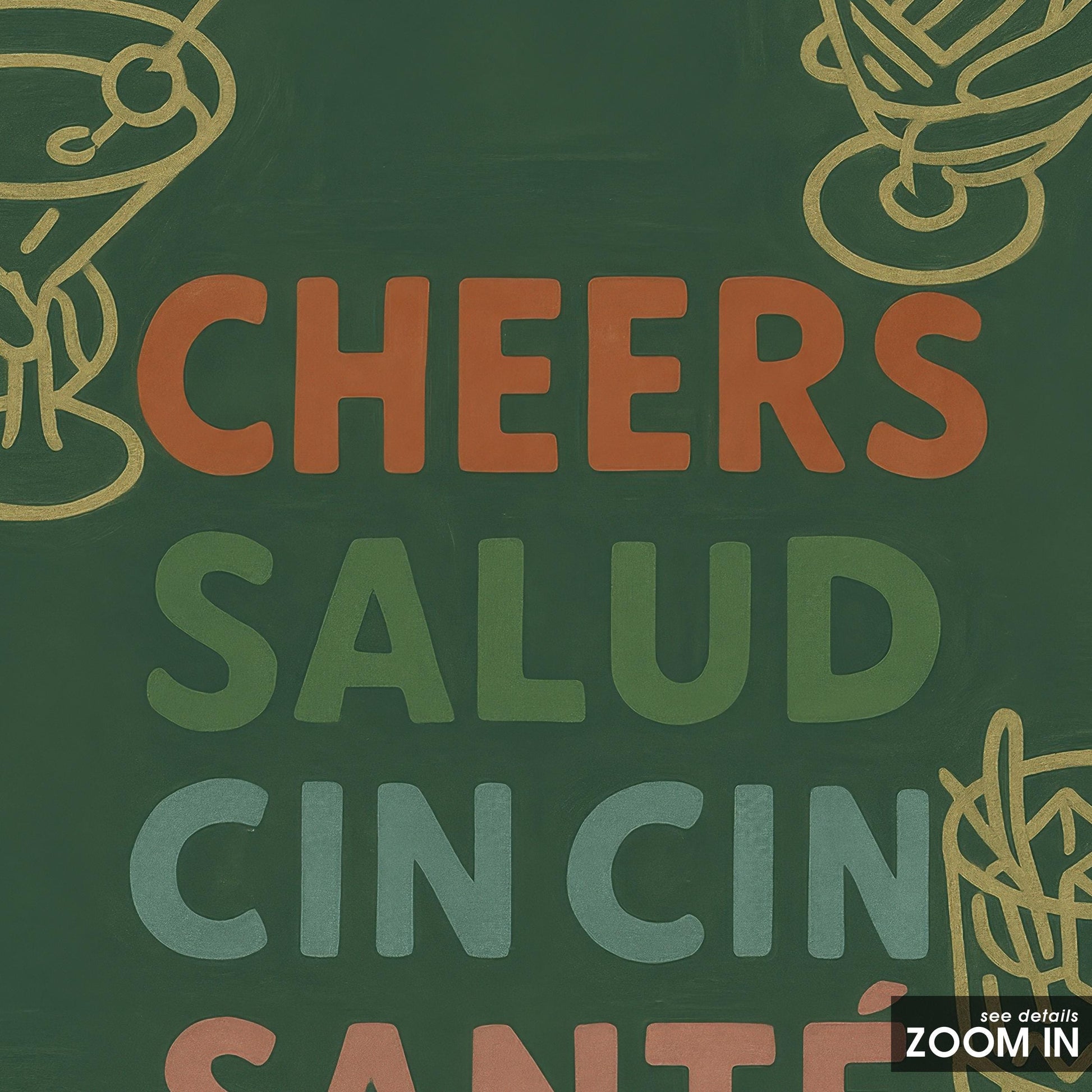 Retro Cocktail Wall Art – Multilingual Toast Print With Bold Typography Poster