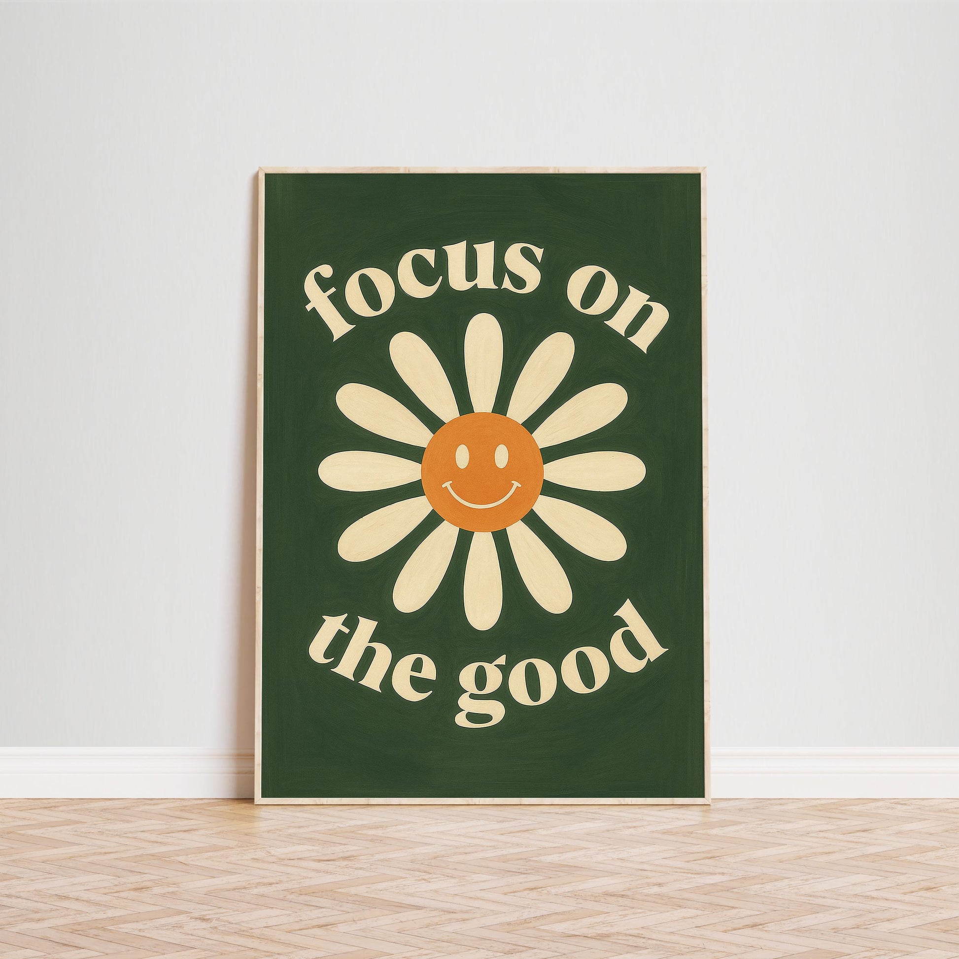 Retro Flower Poster – Motivational Wall Art With Smiley Daisy & Vintage Typography