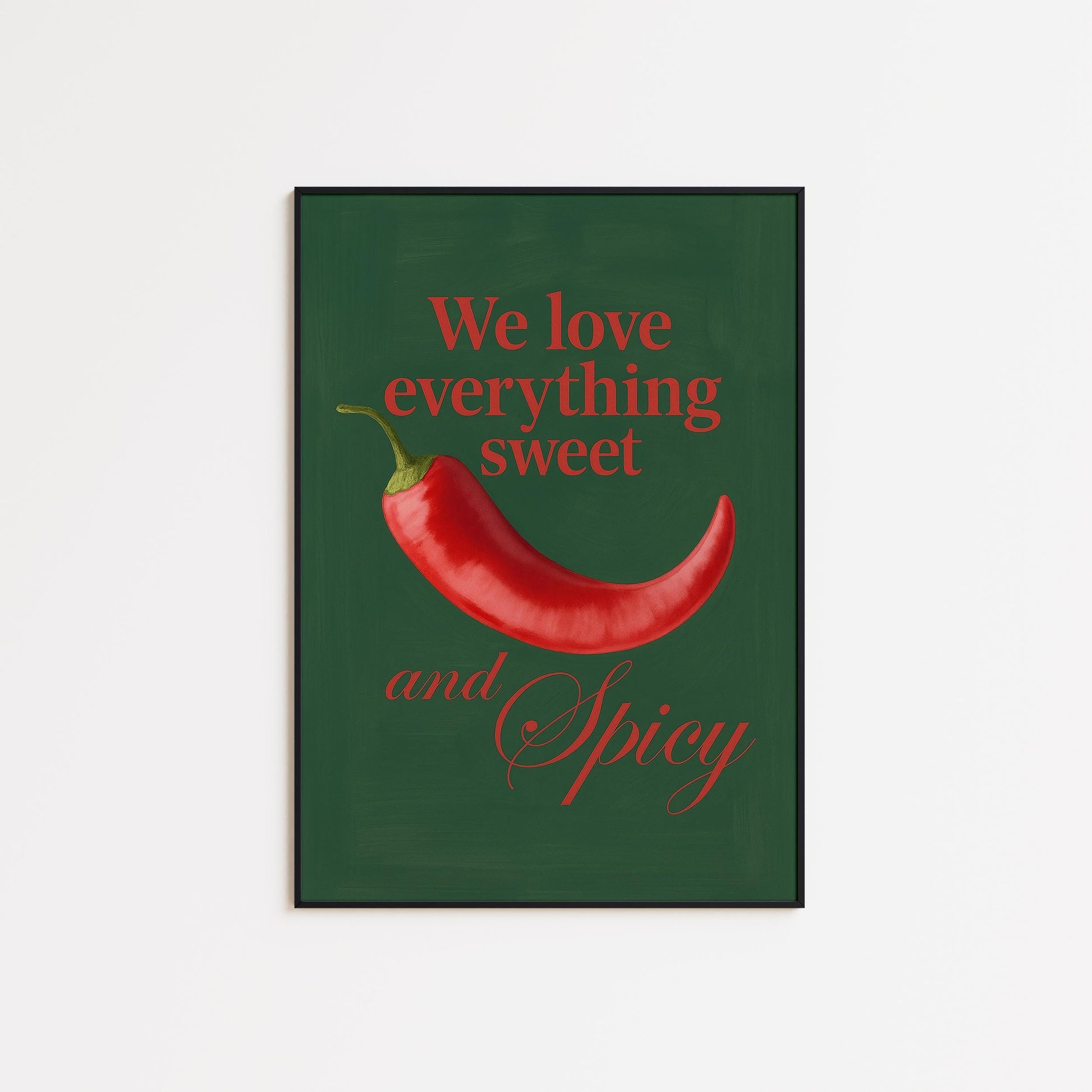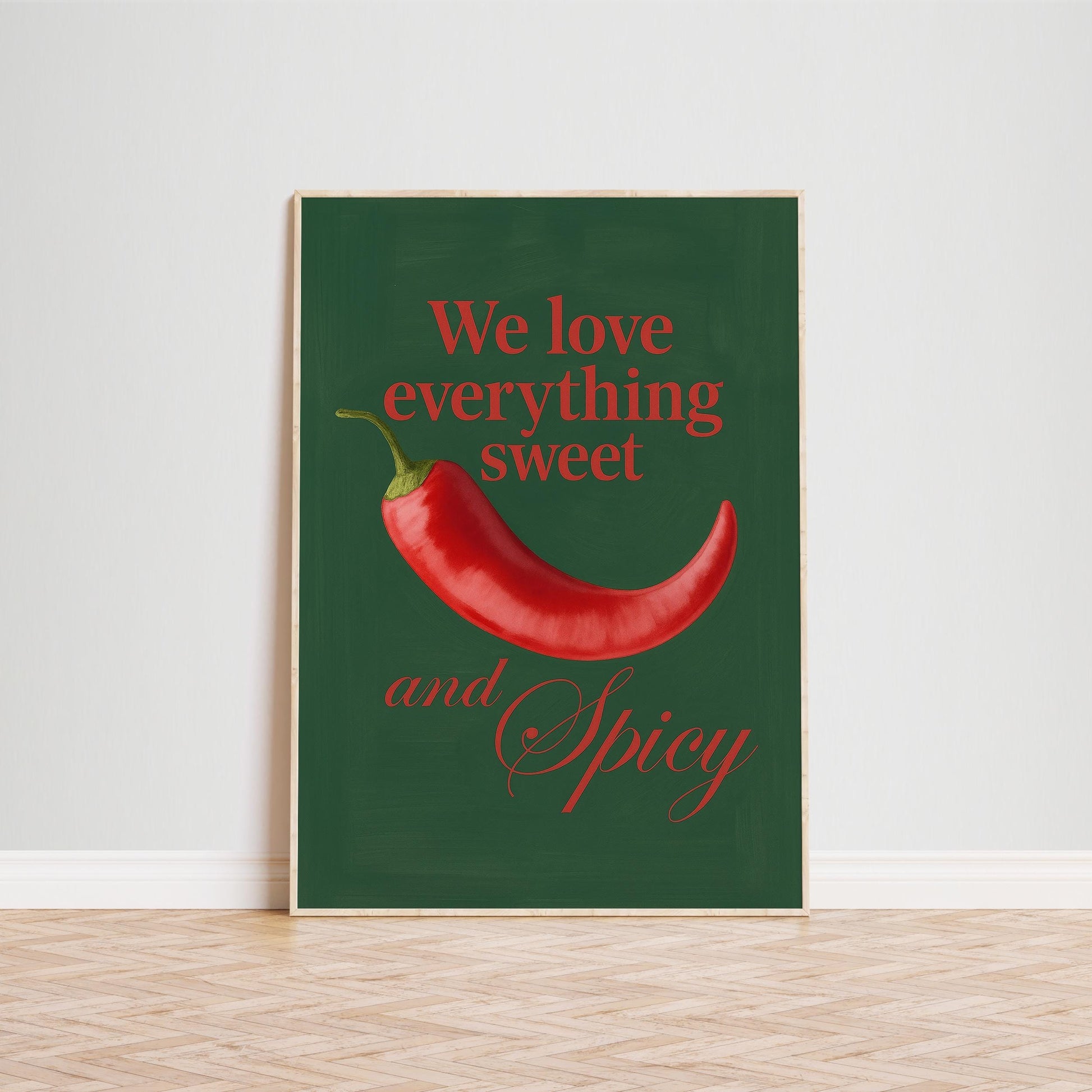 Retro Kitchen Poster – Vintage Kitchen Art With Sweet and Spicy Chili Pepper Print
