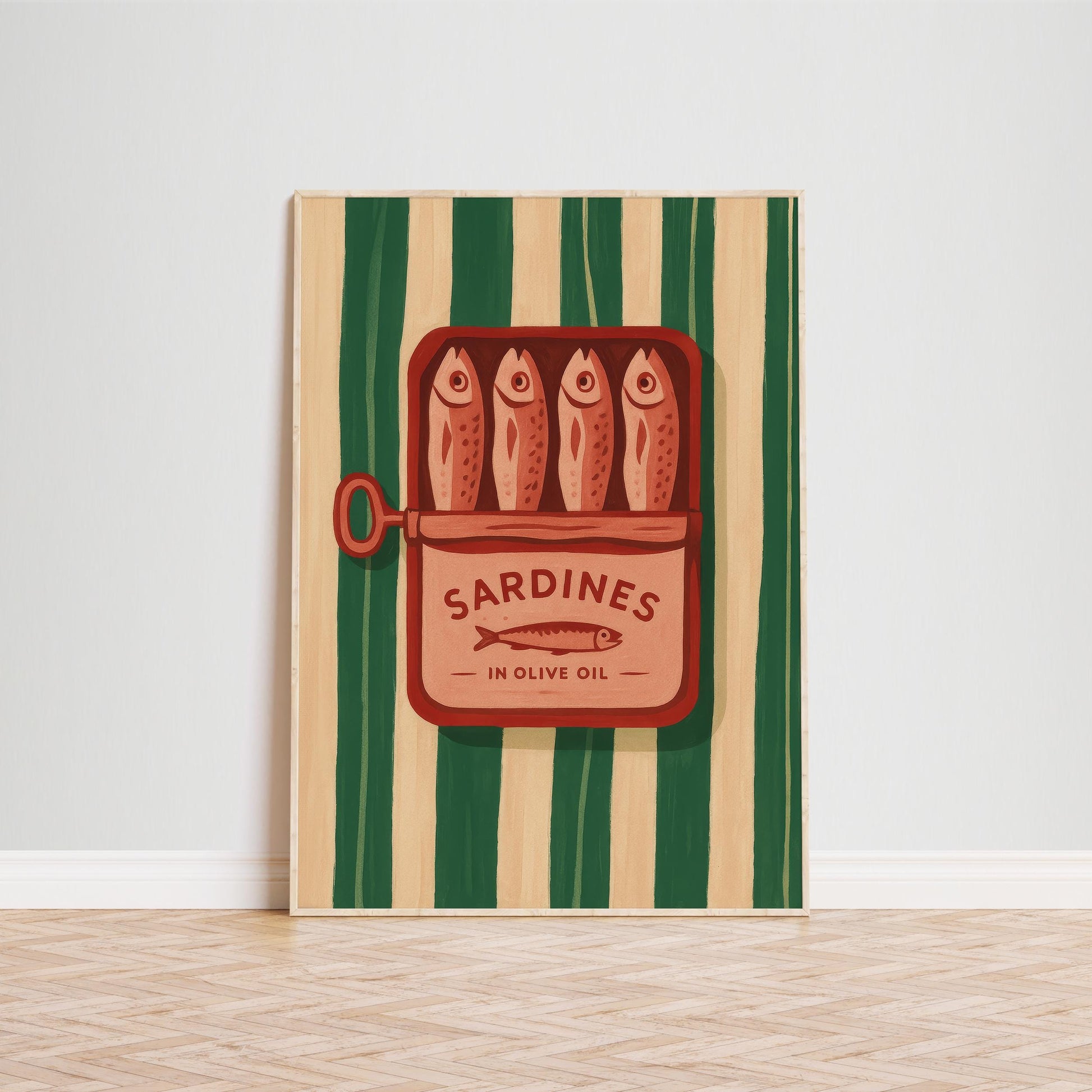 Retro Kitchen Wall Art – Vintage Food Print With Olive Oil Sardines Print