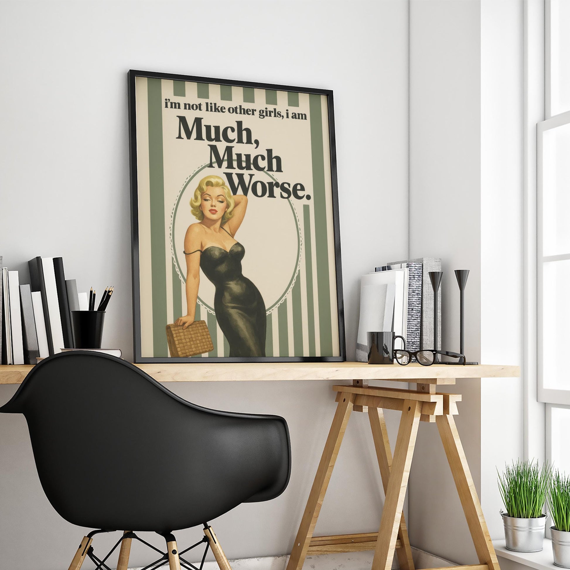 Retro Pin-Up Poster – Feminist Wall Art With Dark Humor Quote & Vintage Glam