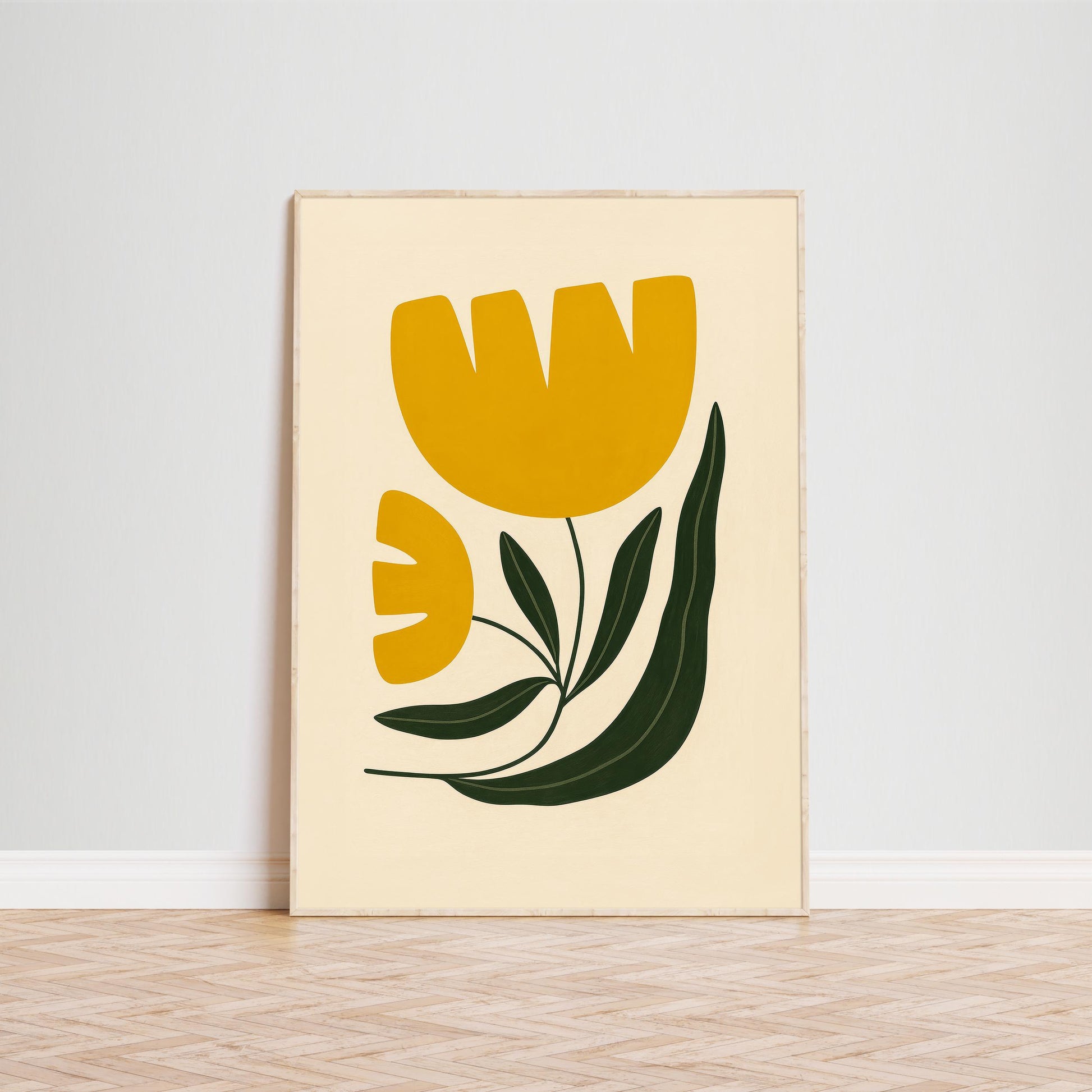 Retro Tulip Wall Art – Minimalist Floral Poster | Mustard Green Decor, Midcentury Flower Print